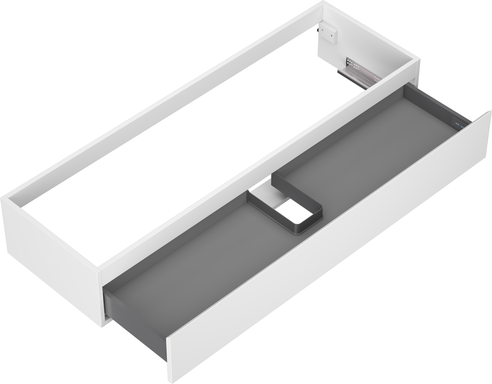 Il ritaglio nel cassetto è progettato in modo da ospitare il sifone, che è necessario nelle installazioni dei lavandini. Grazie a ciò, il mobile può essere montato in modo completamente funzionale, senza dover rinunciare allo spazio nel cassetto a favore dell'installazione.