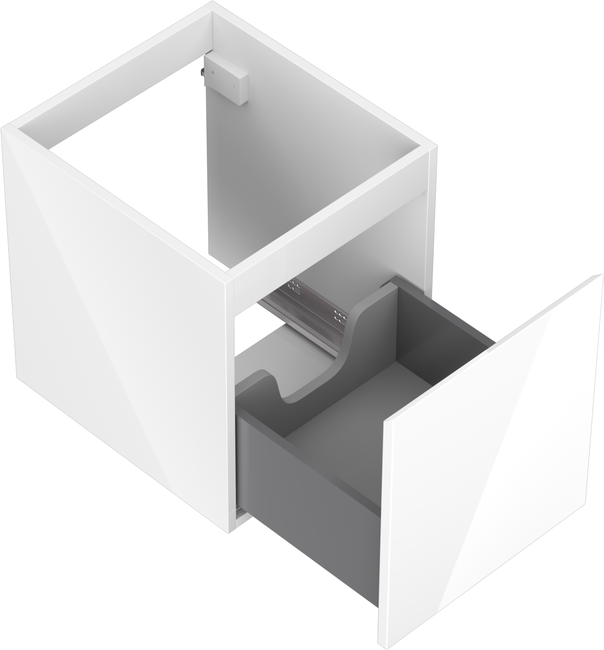 Il ritaglio nel cassetto è progettato in modo da ospitare il sifone, che è necessario nelle installazioni dei lavandini. Grazie a ciò, il mobile può essere montato in modo completamente funzionale, senza dover rinunciare allo spazio nel cassetto a favore dell'installazione.