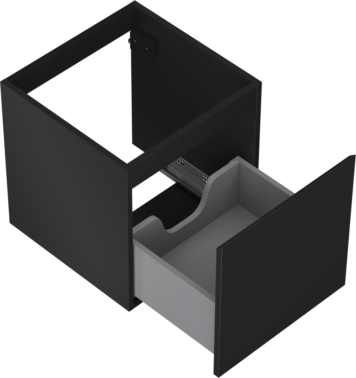 Il ritaglio nel cassetto è progettato in modo da ospitare il sifone, che è necessario nelle installazioni dei lavandini. Grazie a ciò, il mobile può essere montato in modo completamente funzionale, senza dover rinunciare allo spazio nel cassetto a favore dell'installazione.
