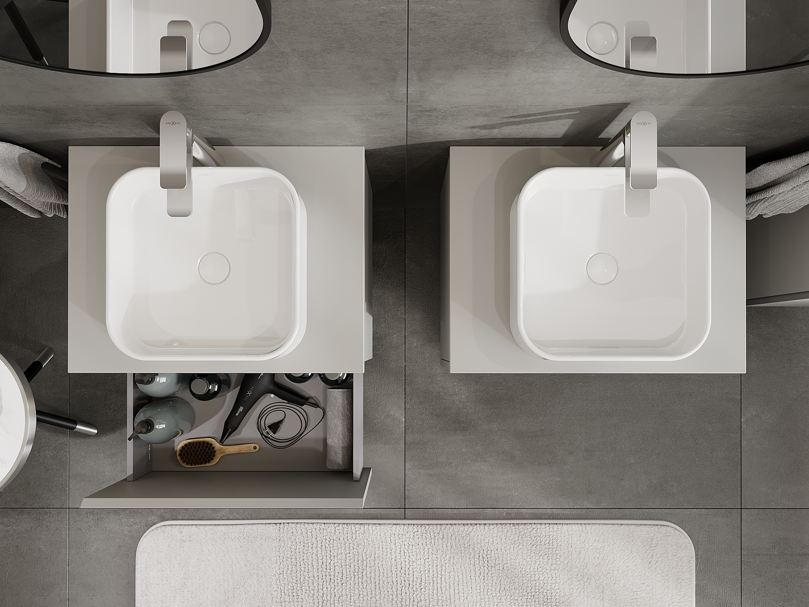 I nostri mobili da bagno modulari possono essere combinati tra loro in diverse configurazioni di colore, consentendo una personalizzazione completa. È possibile scegliere sia l'aspetto che le funzioni dei singoli elementi, permettendo di adattare i mobili alle proprie preferenze stilistiche e di utilizzo.