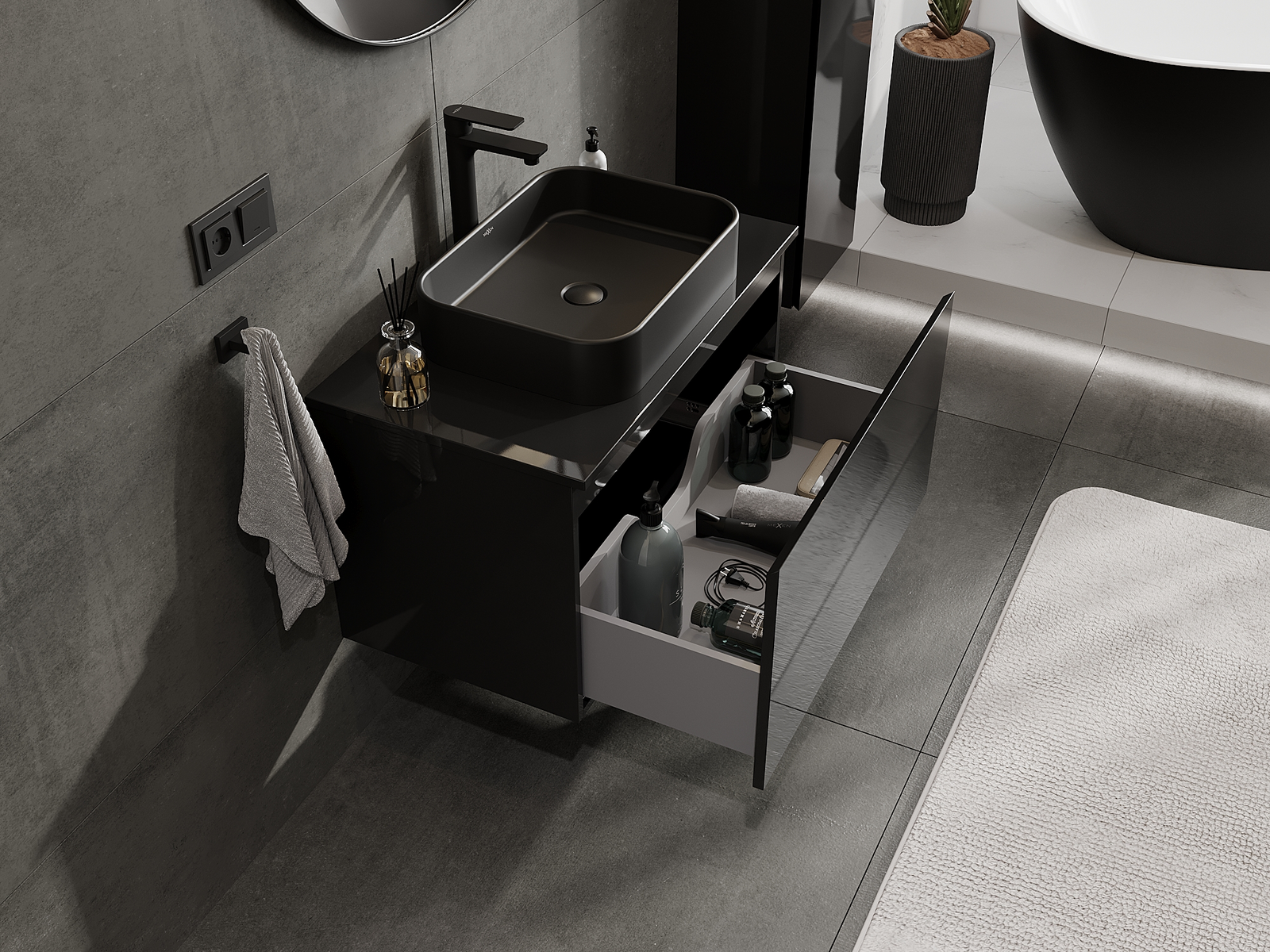 Mexen Orio mobiletto da bagno sottolavabo 80 cm, 1 cassetto, nero lucido - 91A10-08047-1-BF70