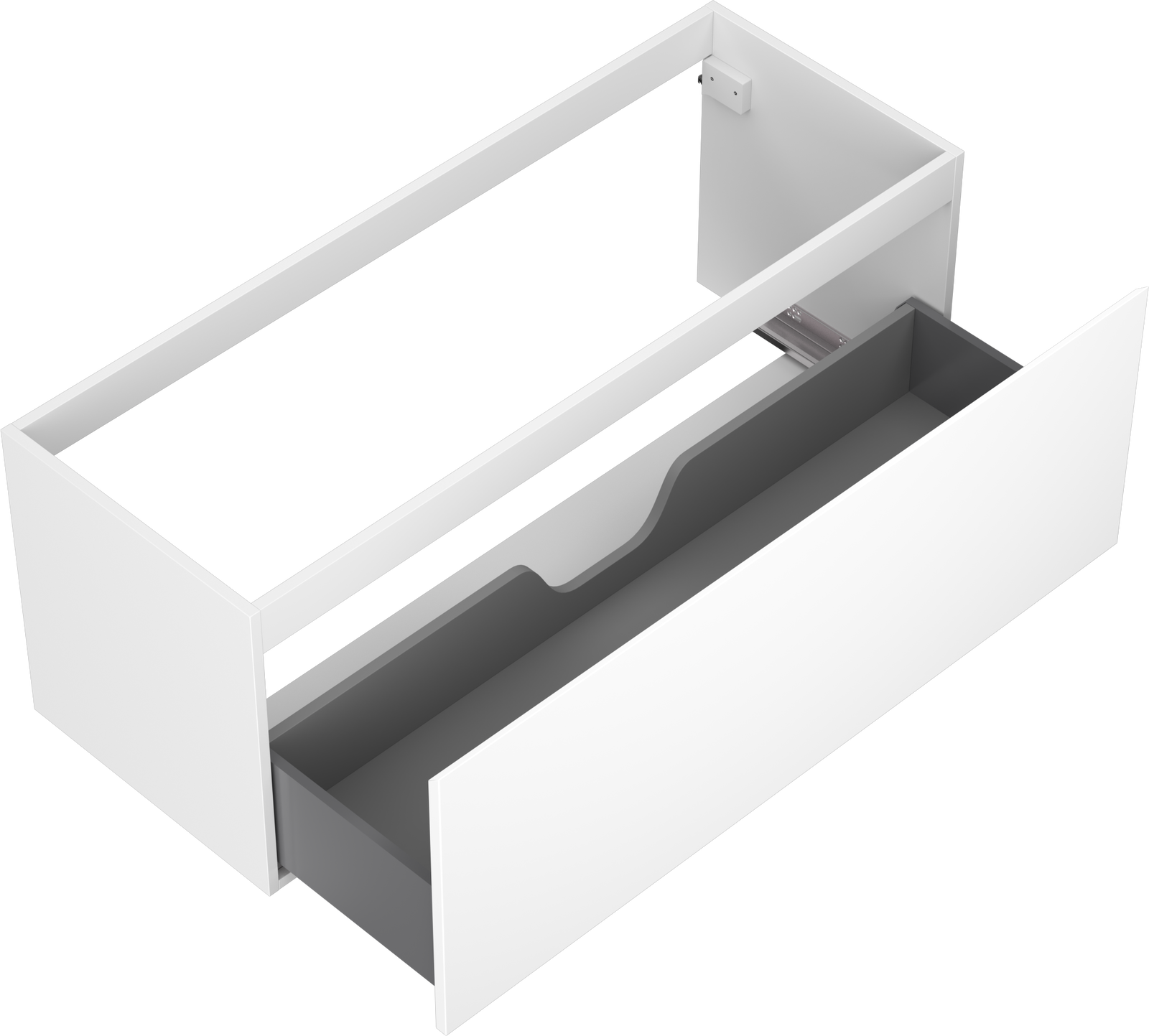 Il ritaglio nel cassetto è progettato in modo da ospitare il sifone, che è necessario nelle installazioni dei lavandini. Grazie a ciò, il mobile può essere montato in modo completamente funzionale, senza dover rinunciare allo spazio nel cassetto a favore dell'installazione.
