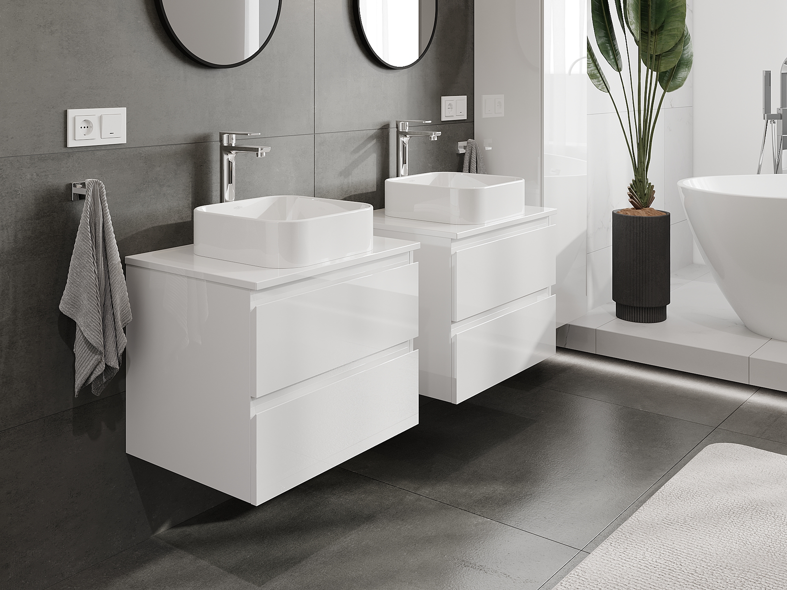 I nostri mobili da bagno modulari possono essere combinati tra loro in diverse configurazioni di colore, consentendo una personalizzazione completa. È possibile scegliere sia l'aspetto che le funzioni dei singoli elementi, permettendo di adattare i mobili alle proprie preferenze stilistiche e di utilizzo.