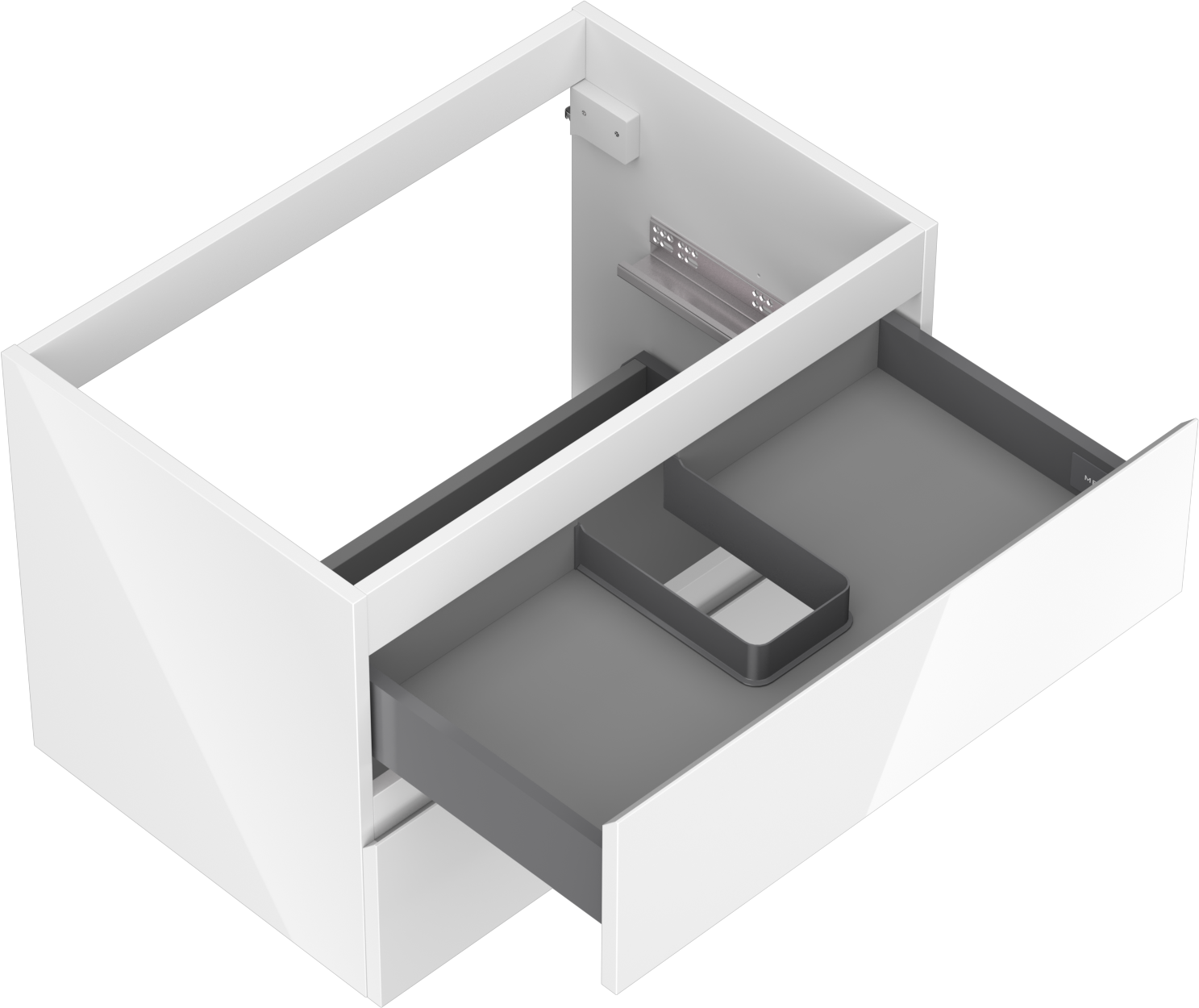 Il ritaglio nel cassetto è progettato in modo da ospitare il sifone, che è necessario nelle installazioni dei lavandini. Grazie a ciò, il mobile può essere montato in modo completamente funzionale, senza dover rinunciare allo spazio nel cassetto a favore dell'installazione.