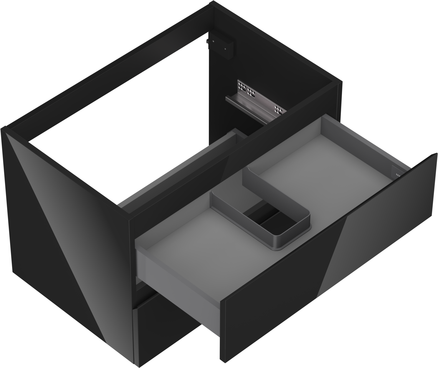 Il ritaglio nel cassetto è progettato in modo da ospitare il sifone, che è necessario nelle installazioni dei lavandini. Grazie a ciò, il mobile può essere montato in modo completamente funzionale, senza dover rinunciare allo spazio nel cassetto a favore dell'installazione.