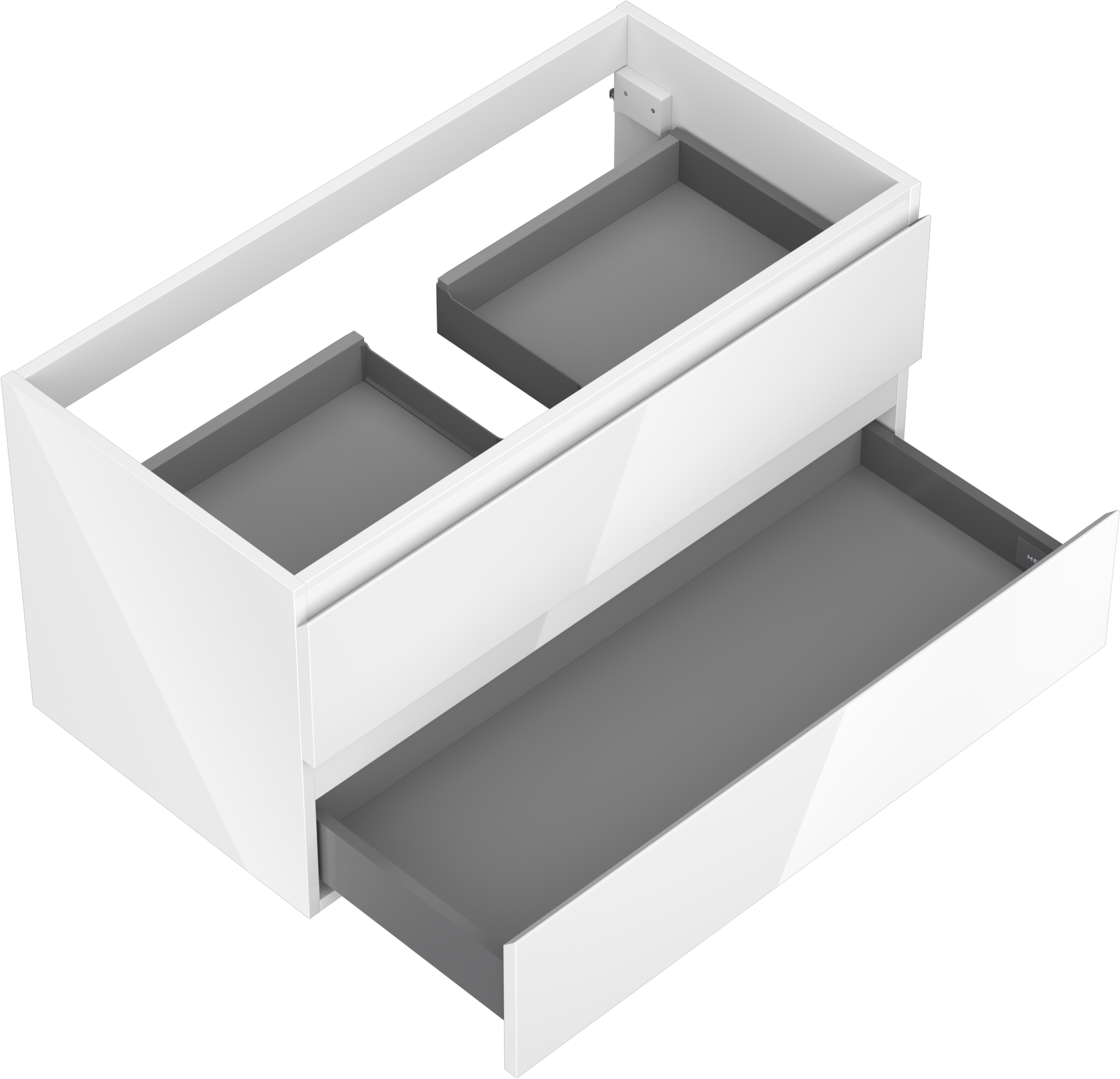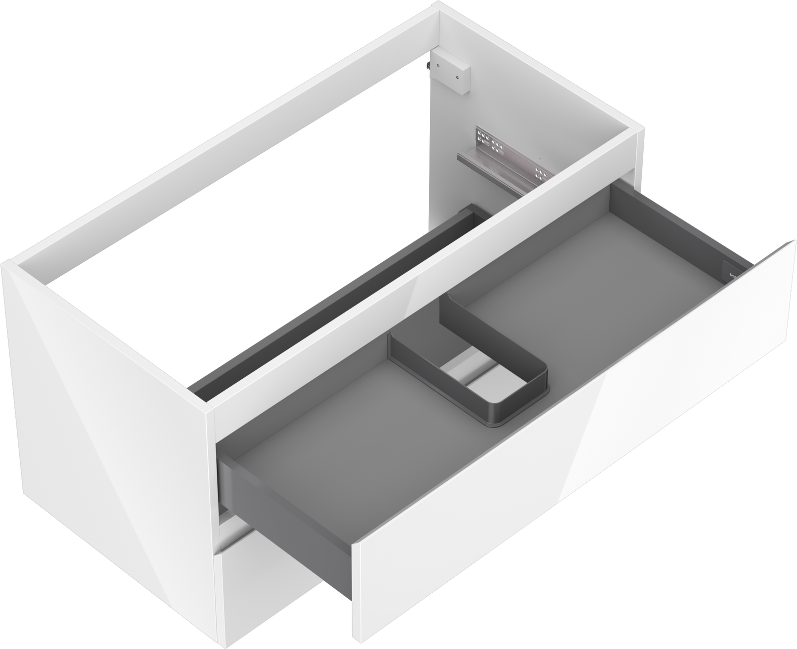Il ritaglio nel cassetto è progettato in modo da ospitare il sifone, che è necessario nelle installazioni dei lavandini. Grazie a ciò, il mobile può essere montato in modo completamente funzionale, senza dover rinunciare allo spazio nel cassetto a favore dell'installazione.