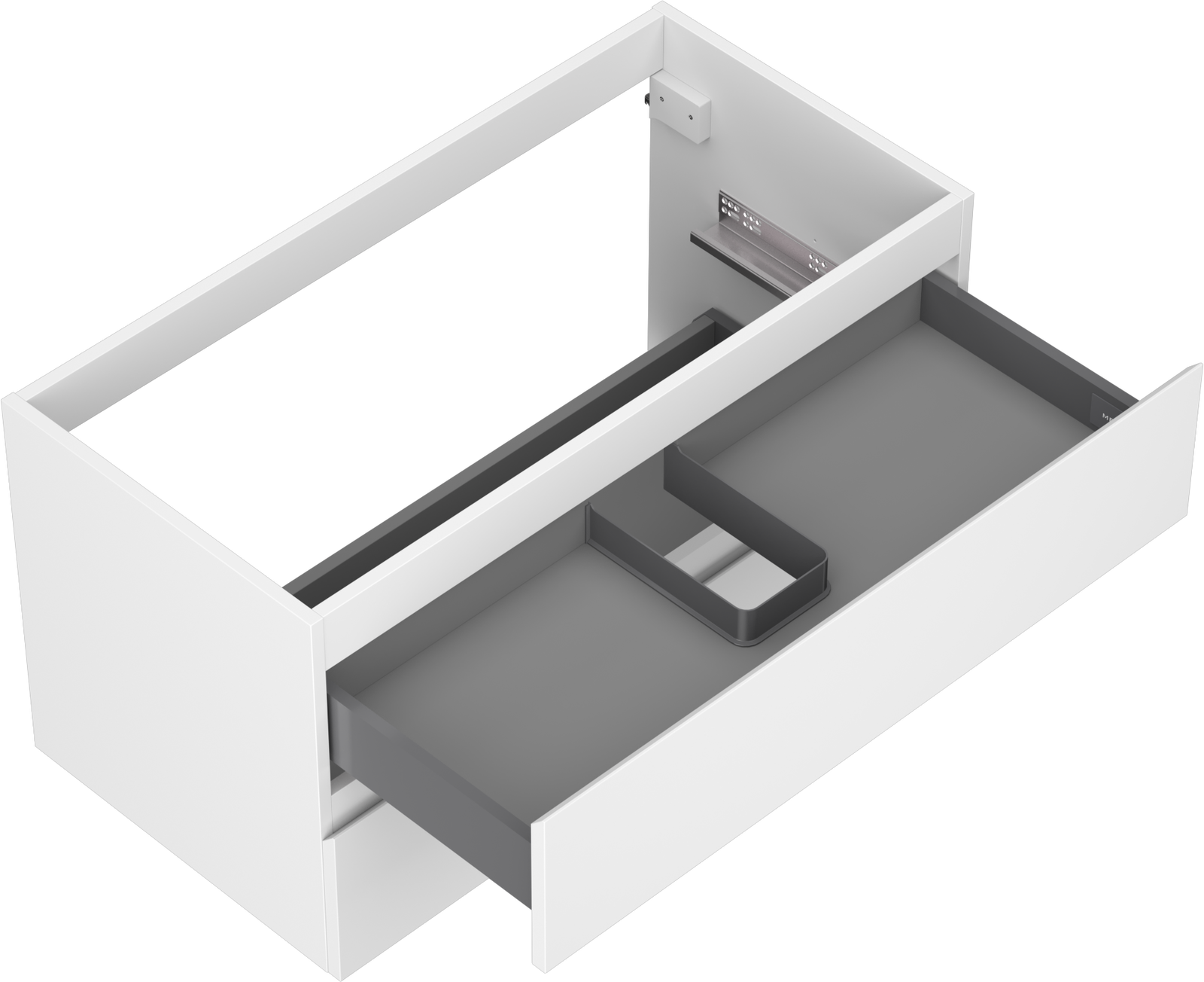 Il ritaglio nel cassetto è progettato in modo da ospitare il sifone, che è necessario nelle installazioni dei lavandini. Grazie a ciò, il mobile può essere montato in modo completamente funzionale, senza dover rinunciare allo spazio nel cassetto a favore dell'installazione.