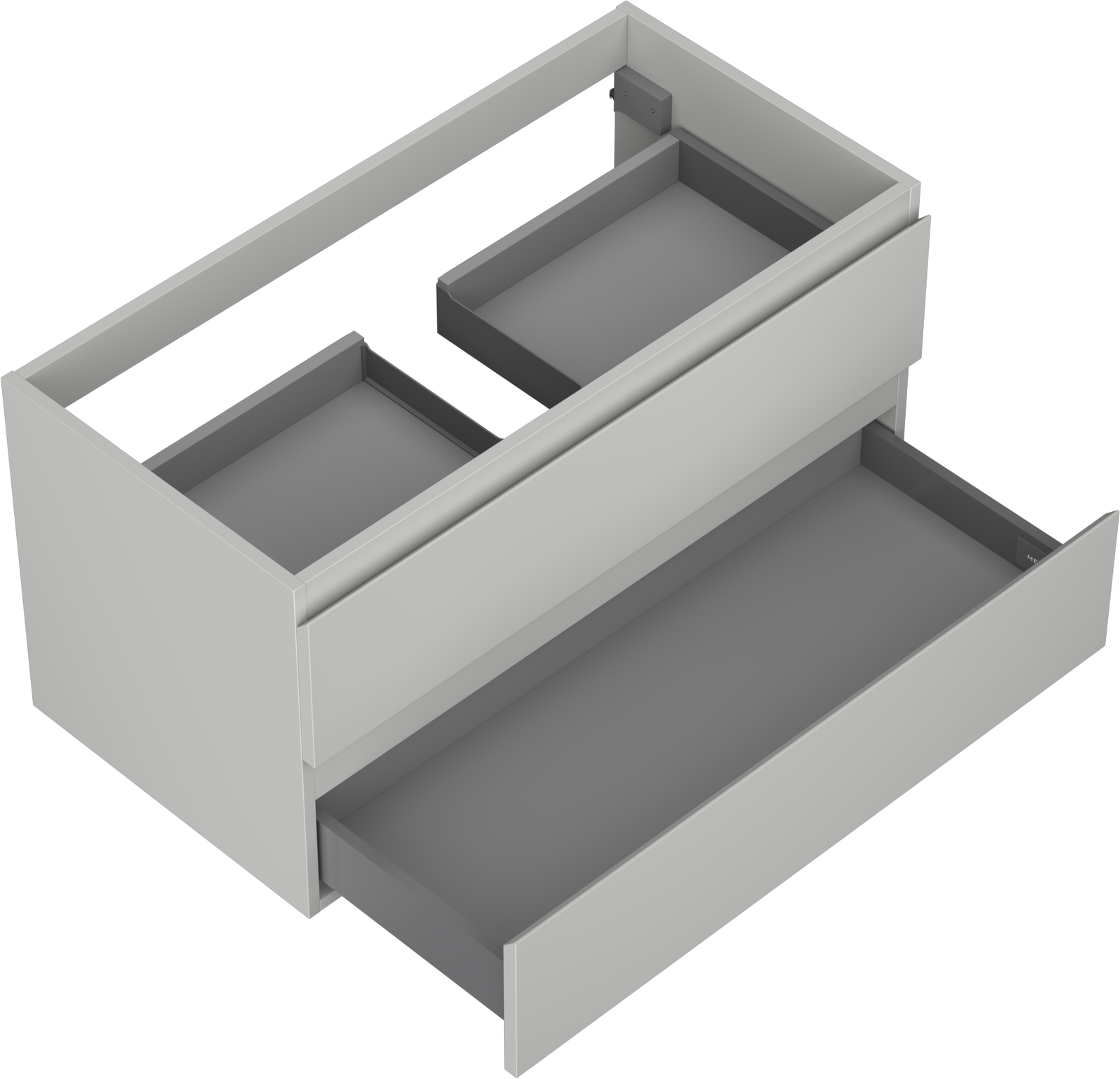 Il ritaglio nel cassetto è progettato in modo da ospitare il sifone, che è necessario nelle installazioni dei lavandini. Grazie a ciò, il mobile può essere montato in modo completamente funzionale, senza dover rinunciare allo spazio nel cassetto a favore dell'installazione.