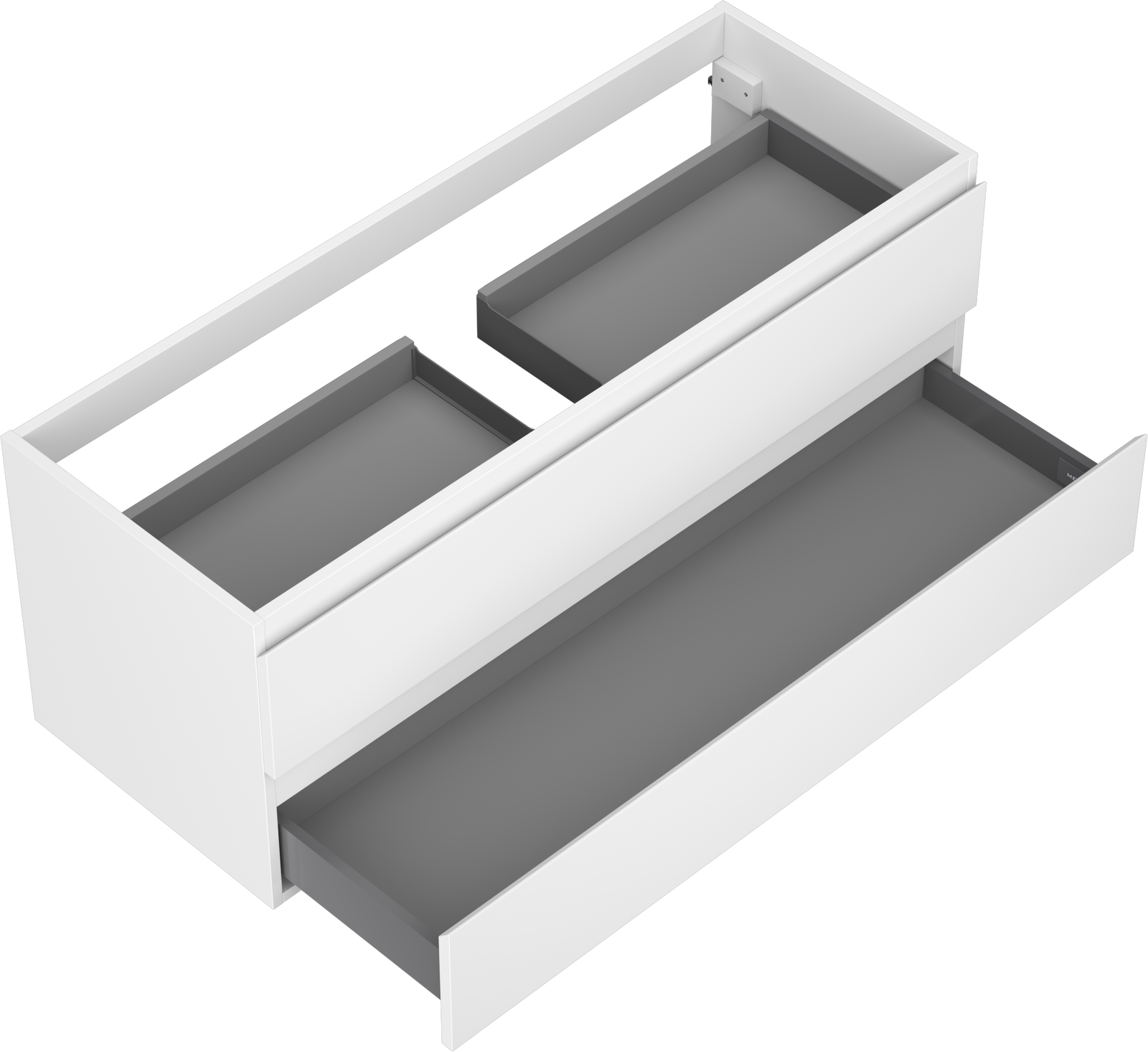 Il ritaglio nel cassetto è progettato in modo da ospitare il sifone, che è necessario nelle installazioni dei lavandini. Grazie a ciò, il mobile può essere montato in modo completamente funzionale, senza dover rinunciare allo spazio nel cassetto a favore dell'installazione.