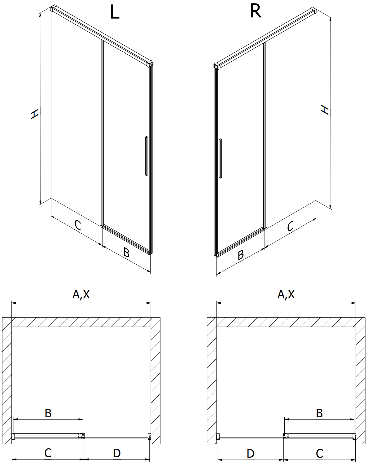 Grazie all'uso di un sistema di montaggio universale, le porte della doccia possono essere montate a destra o a sinistra, a seconda delle esigenze. In questo modo puoi progettare facilmente una doccia adatta allo spazio del bagno.