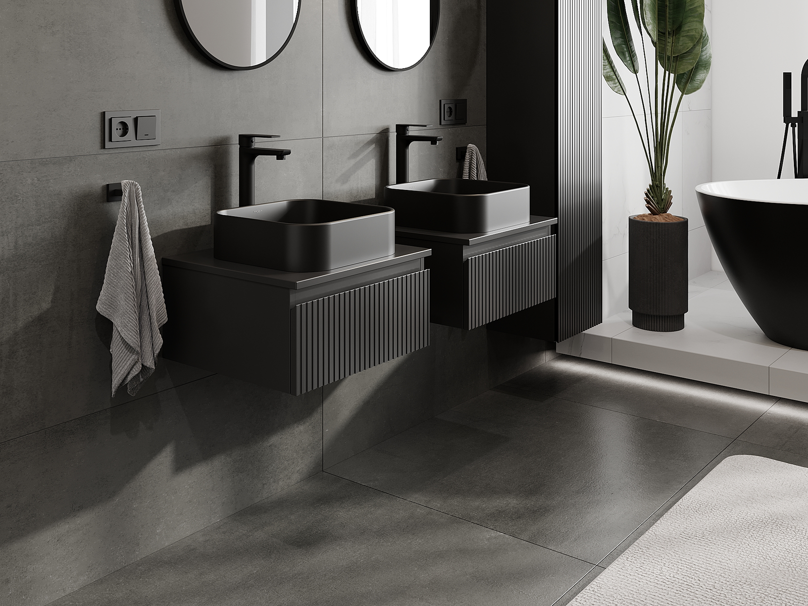 Mexen Rivel mobile da bagno per lavabo 50 cm, 1 cassetto, scanalato, nero opaco - 91A20-05023-1-BF71