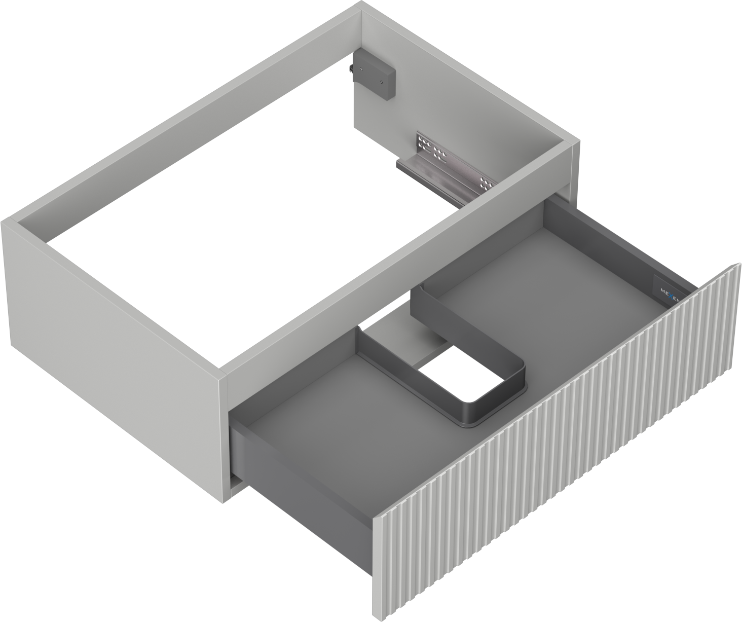 Il ritaglio nel cassetto è progettato in modo da ospitare il sifone, che è necessario nelle installazioni dei lavandini. Grazie a ciò, il mobile può essere montato in modo completamente funzionale, senza dover rinunciare allo spazio nel cassetto a favore dell'installazione.