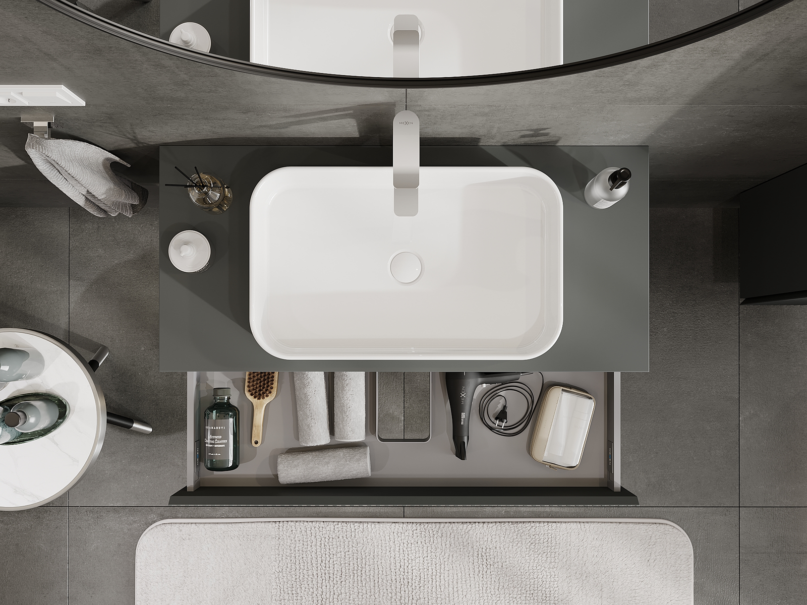 Mexen Rivel mobile bagno sottolavabo 100 cm, 1 cassetto, scanalato, grafite opaco - 91A20-10023-1-BF66
