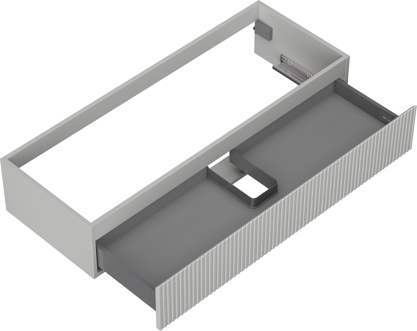 Il ritaglio nel cassetto è progettato in modo da ospitare il sifone, che è necessario nelle installazioni dei lavandini. Grazie a ciò, il mobile può essere montato in modo completamente funzionale, senza dover rinunciare allo spazio nel cassetto a favore dell'installazione.