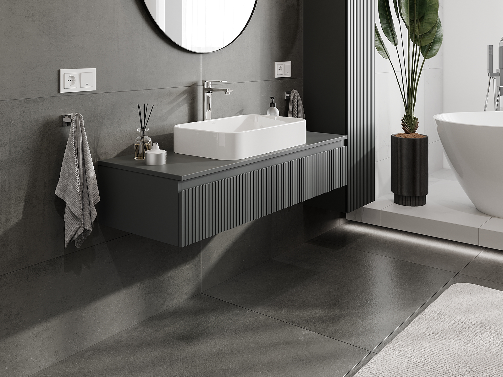 Mexen Rivel armadietto da bagno sottolavabo 120 cm, 1 cassetto, scanalato, grigio opaco - 91A20-12023-1-BF66