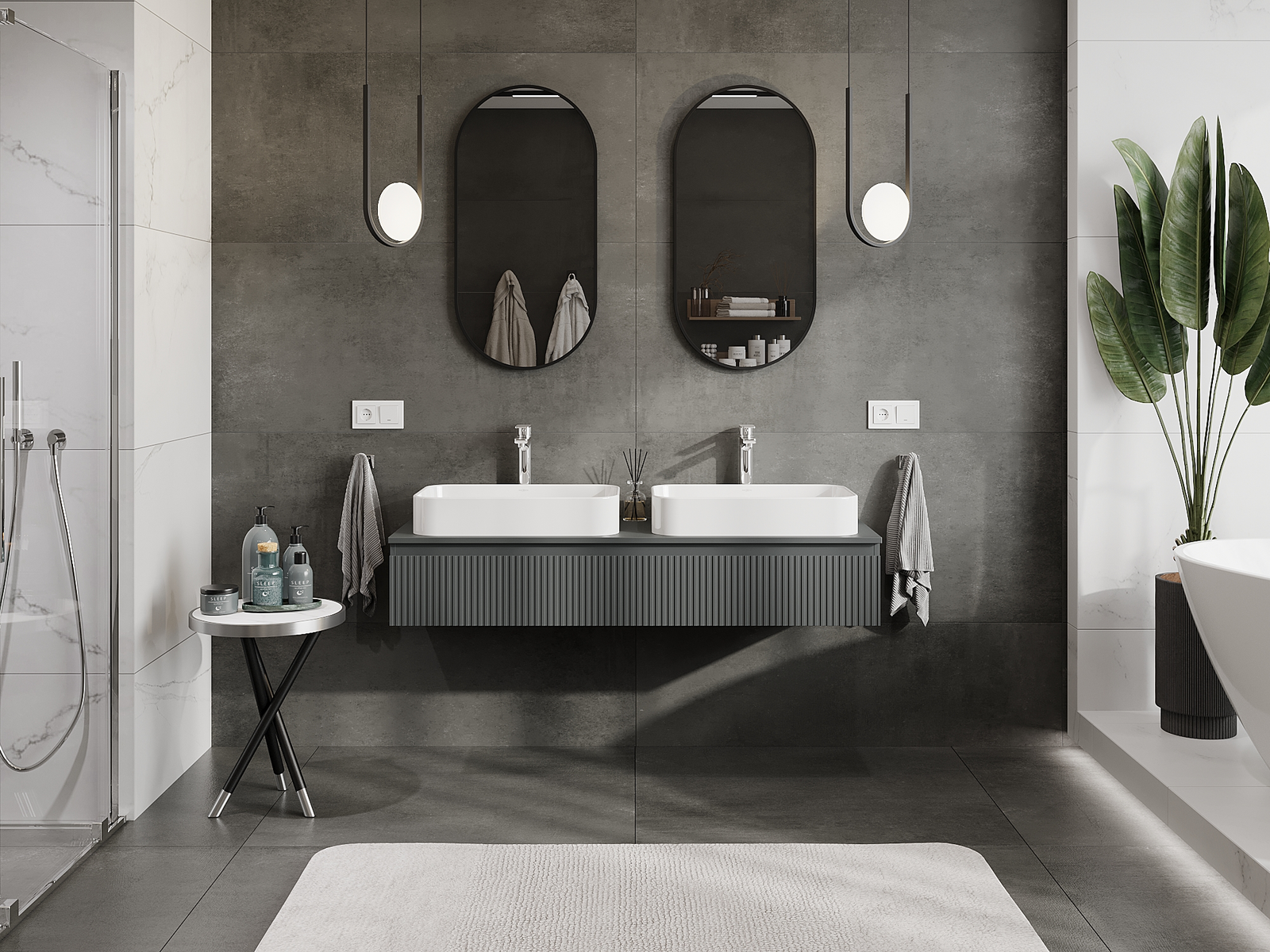 Mexen Rivel mobiletto da bagno sottolavabo 140 cm, 1 cassetto, scanalato, grafite opaco - 91A20-14023-1-BF66