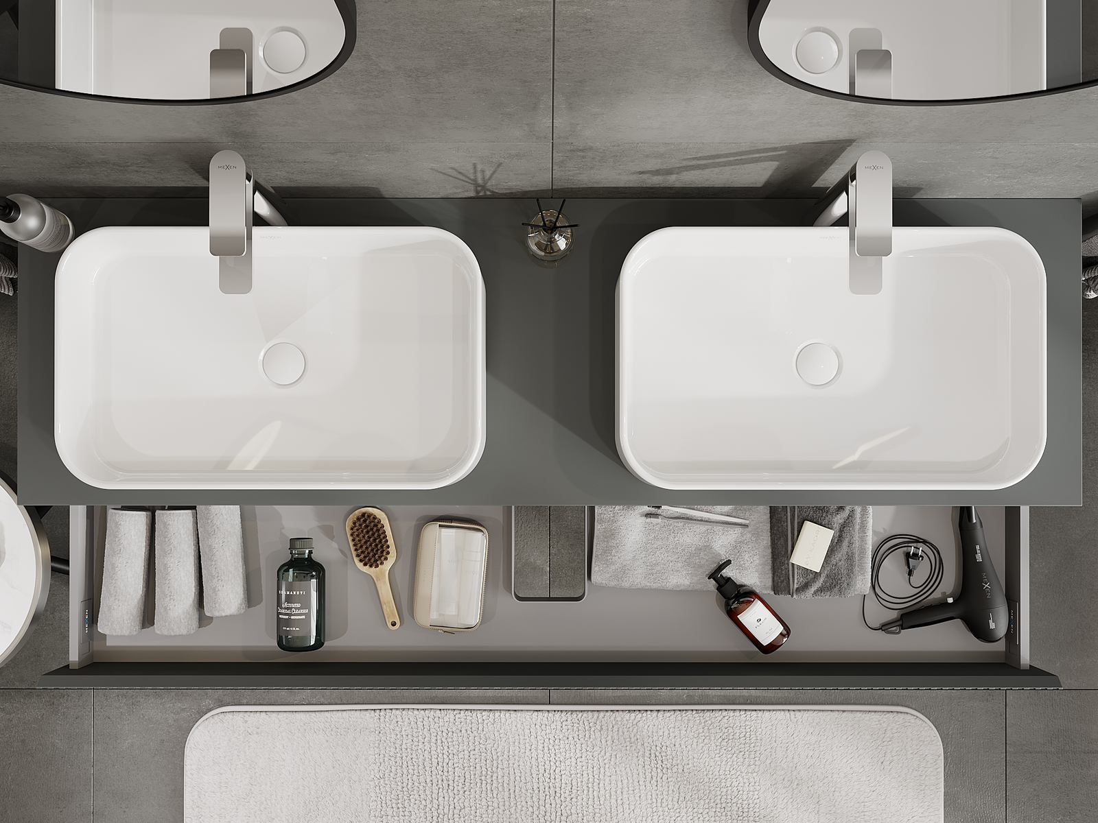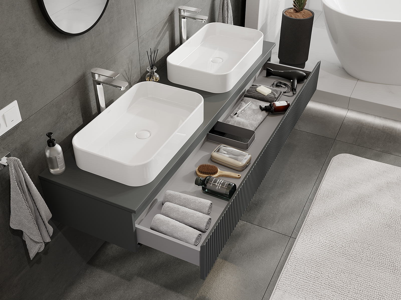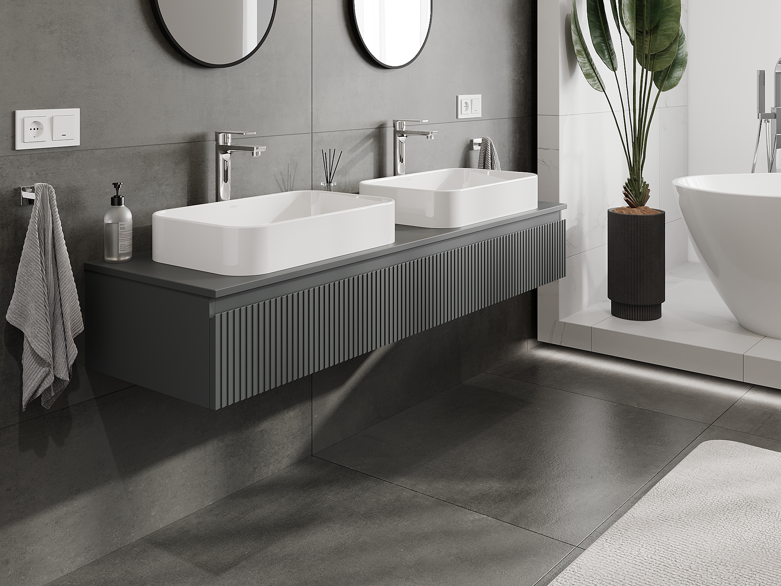 Mexen Rivel mobiletto da bagno sospeso 160 cm, 1 cassetto, scanalato, grafite opaco - 91A20-16023-1-BF66