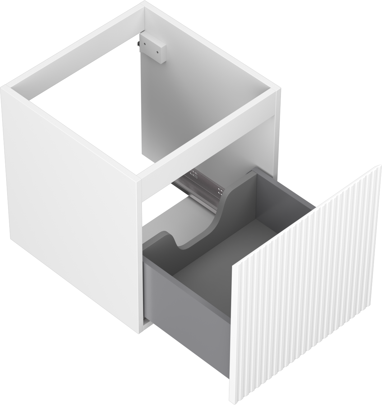 Il ritaglio nel cassetto è progettato in modo da ospitare il sifone, che è necessario nelle installazioni dei lavandini. Grazie a ciò, il mobile può essere montato in modo completamente funzionale, senza dover rinunciare allo spazio nel cassetto a favore dell'installazione.