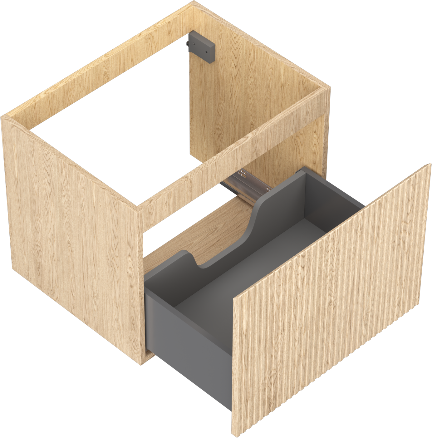 Il ritaglio nel cassetto è progettato in modo da ospitare il sifone, che è necessario nelle installazioni dei lavandini. Grazie a ciò, il mobile può essere montato in modo completamente funzionale, senza dover rinunciare allo spazio nel cassetto a favore dell'installazione.