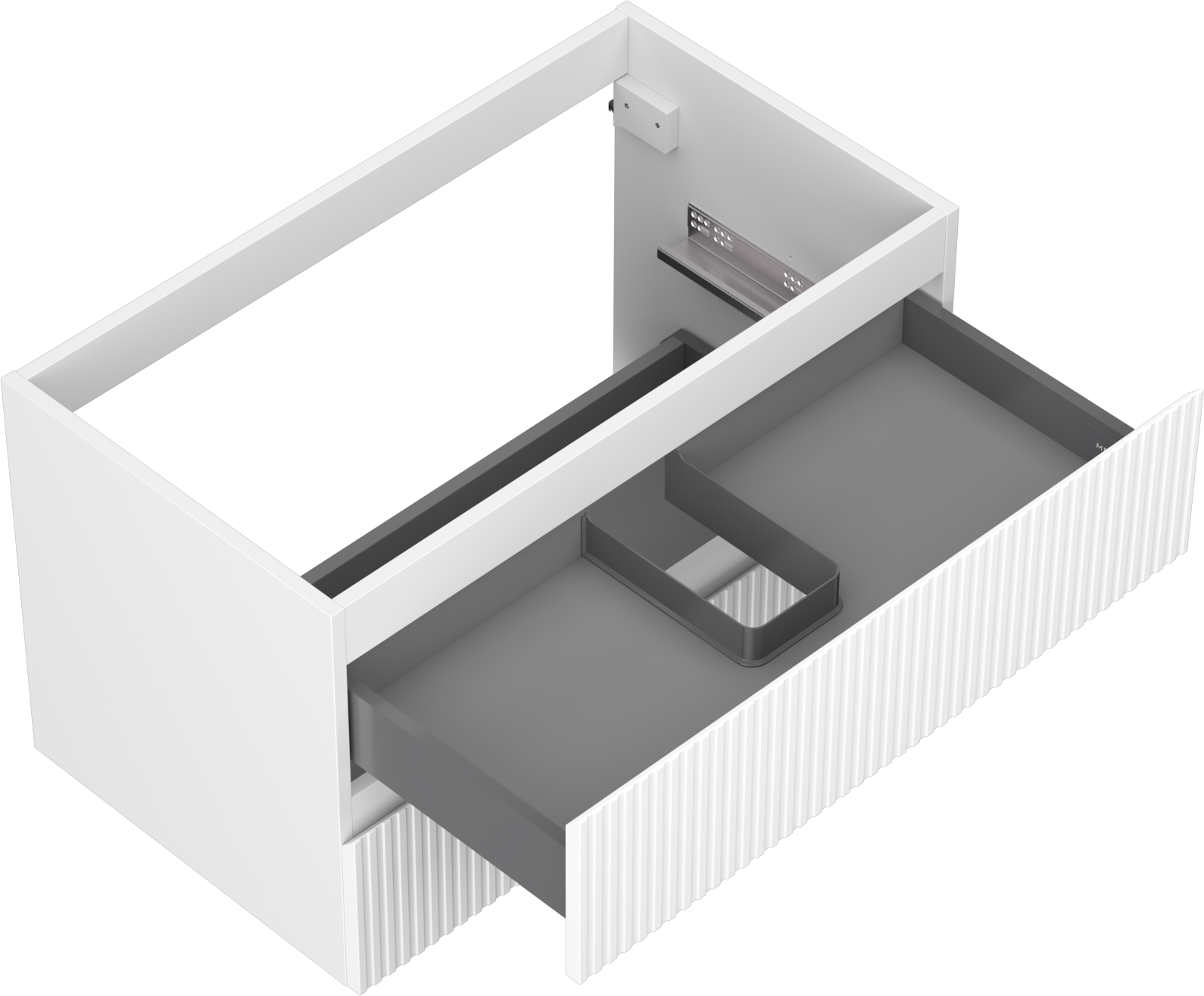 Il ritaglio nel cassetto è progettato in modo da ospitare il sifone, che è necessario nelle installazioni dei lavandini. Grazie a ciò, il mobile può essere montato in modo completamente funzionale, senza dover rinunciare allo spazio nel cassetto a favore dell'installazione.
