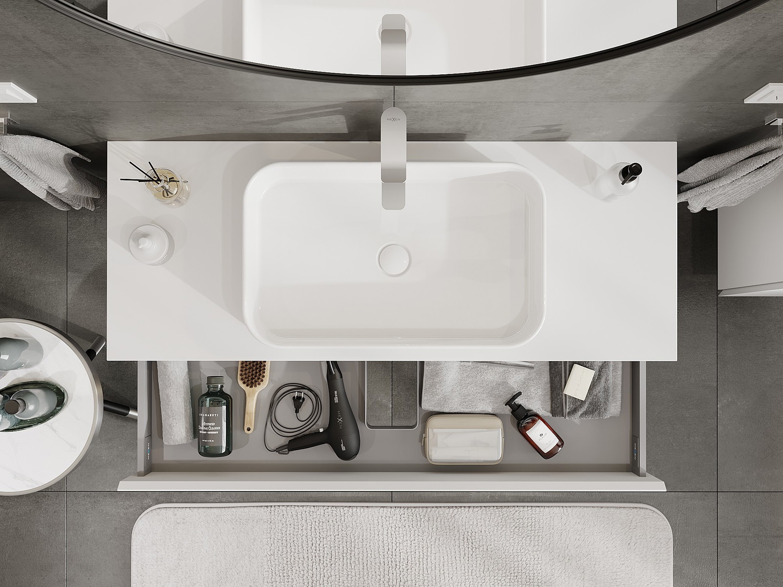 Il ritaglio nel cassetto è progettato in modo da ospitare il sifone, che è necessario nelle installazioni dei lavandini. Grazie a ciò, il mobile può essere montato in modo completamente funzionale, senza dover rinunciare allo spazio nel cassetto a favore dell'installazione.