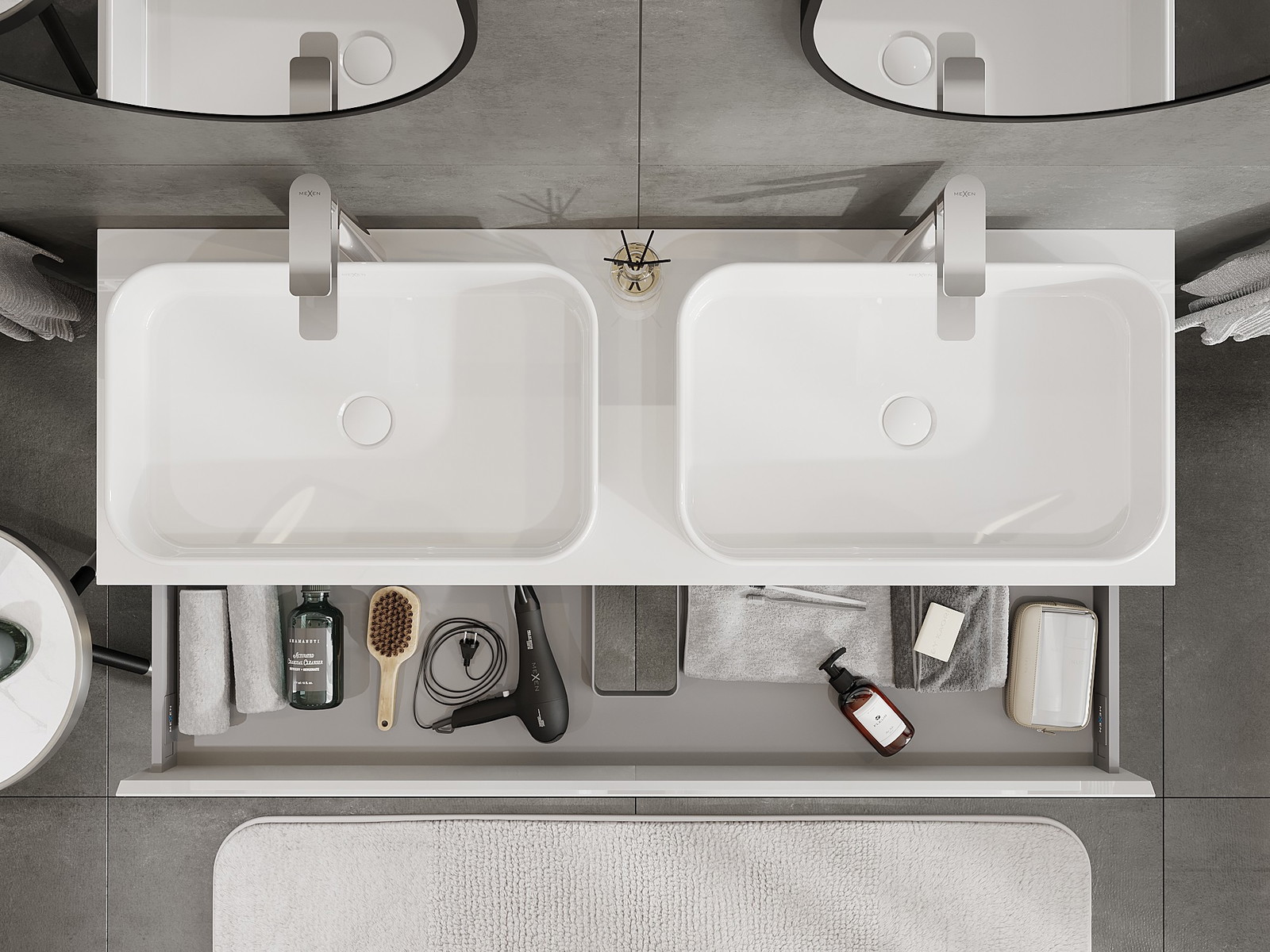 Il ritaglio nel cassetto è progettato in modo da ospitare il sifone, che è necessario nelle installazioni dei lavandini. Grazie a ciò, il mobile può essere montato in modo completamente funzionale, senza dover rinunciare allo spazio nel cassetto a favore dell'installazione.