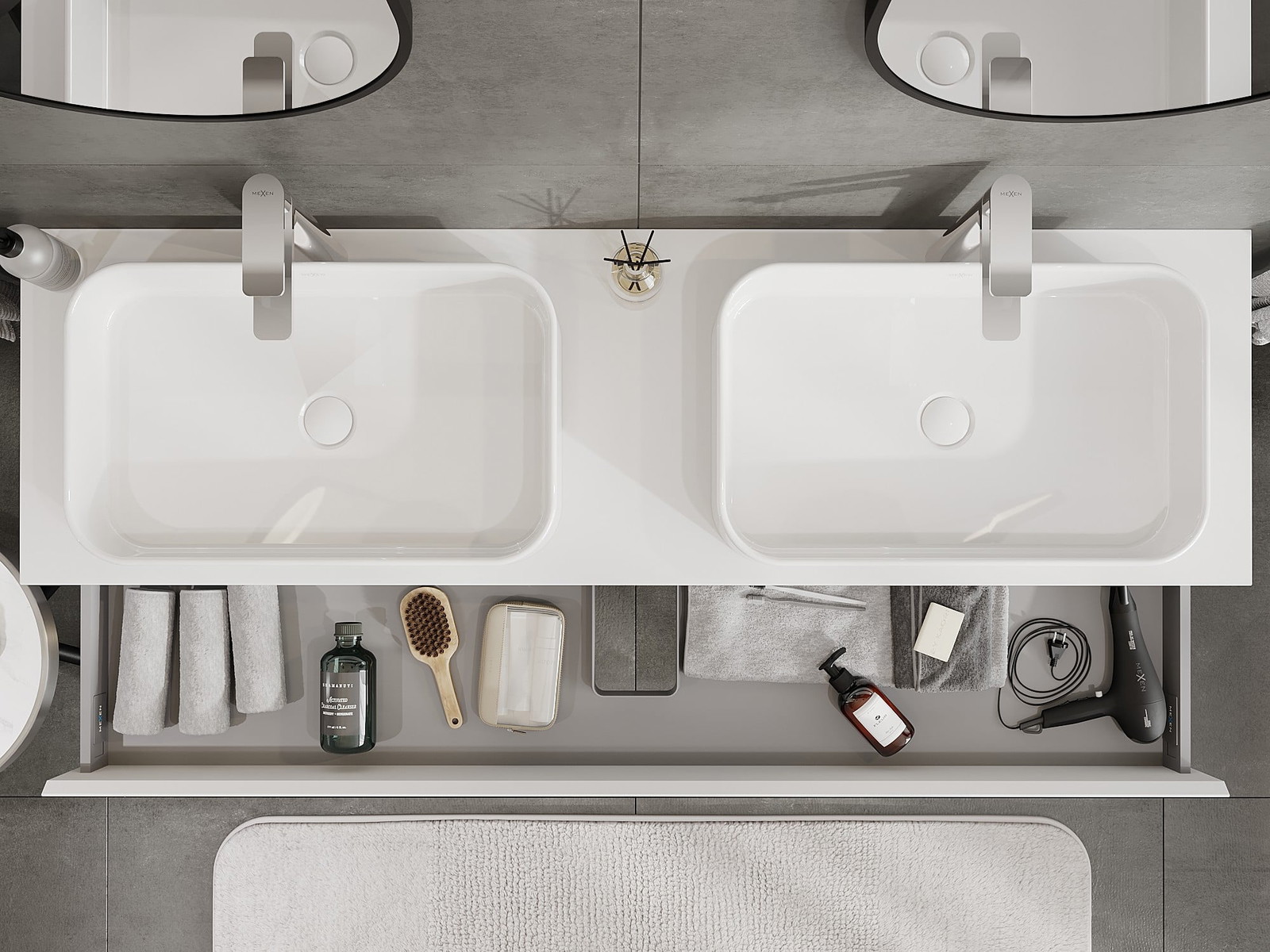 I nostri mobili da bagno modulari possono essere combinati tra loro in diverse configurazioni di colore, consentendo una personalizzazione completa. È possibile scegliere sia l'aspetto che le funzioni dei singoli elementi, permettendo di adattare i mobili alle proprie preferenze stilistiche e di utilizzo.