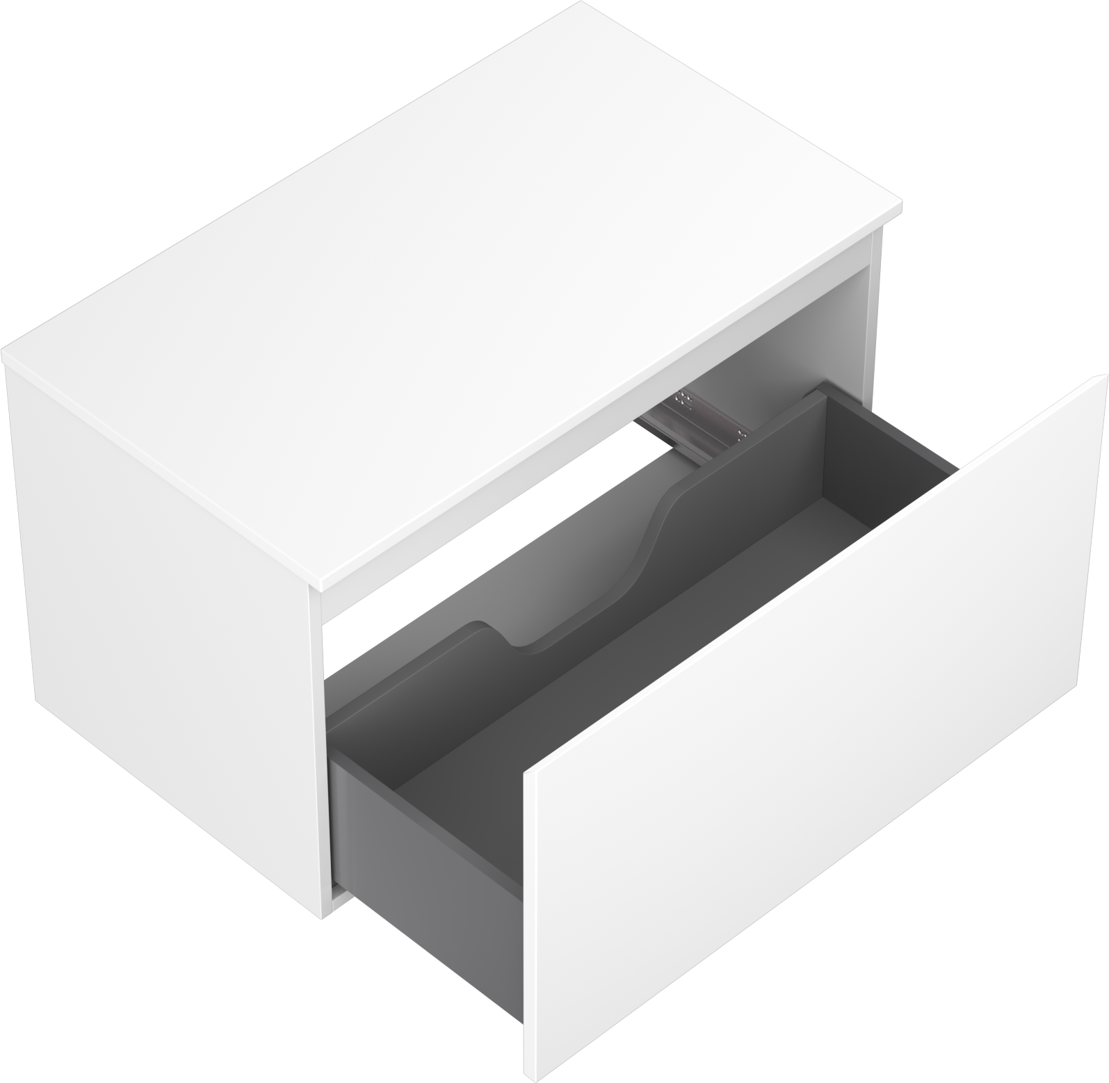 Il ritaglio nel cassetto è progettato in modo da ospitare il sifone, che è necessario nelle installazioni dei lavandini. Grazie a ciò, il mobile può essere montato in modo completamente funzionale, senza dover rinunciare allo spazio nel cassetto a favore dell'installazione.