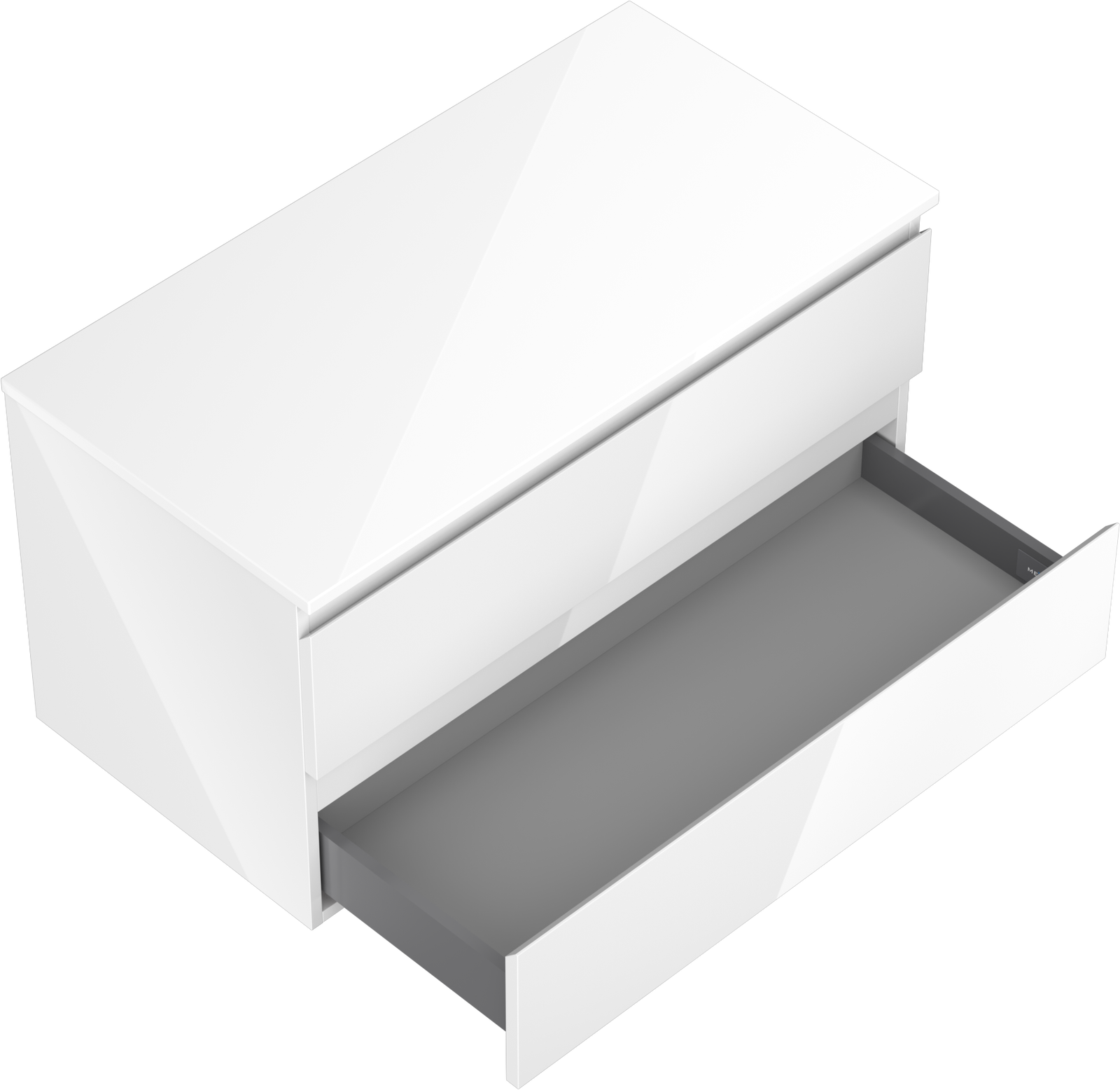 Il ritaglio nel cassetto è progettato in modo da ospitare il sifone, che è necessario nelle installazioni dei lavandini. Grazie a ciò, il mobile può essere montato in modo completamente funzionale, senza dover rinunciare allo spazio nel cassetto a favore dell'installazione.