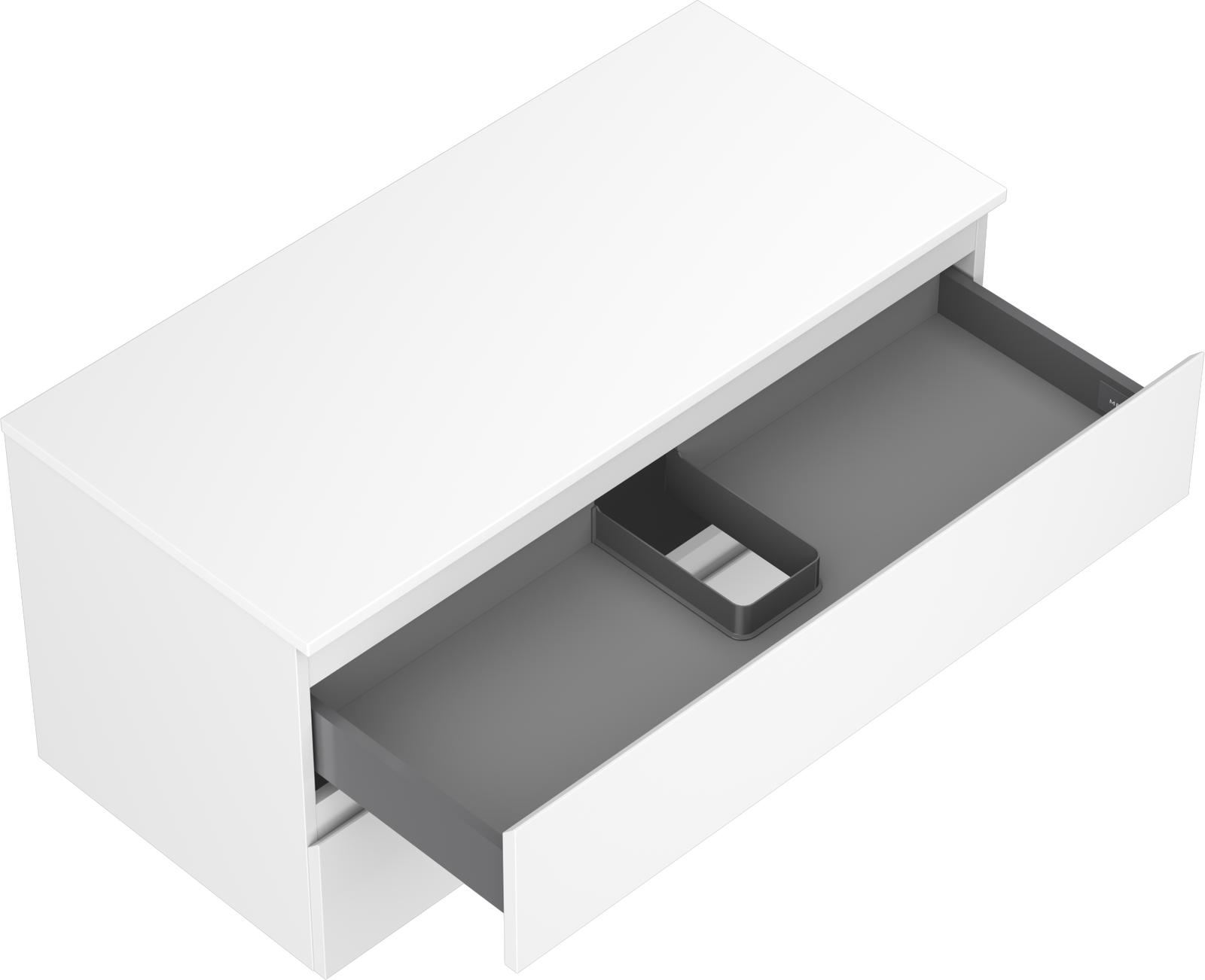 Il ritaglio nel cassetto è progettato in modo da ospitare il sifone, che è necessario nelle installazioni dei lavandini. Grazie a ciò, il mobile può essere montato in modo completamente funzionale, senza dover rinunciare allo spazio nel cassetto a favore dell'installazione.