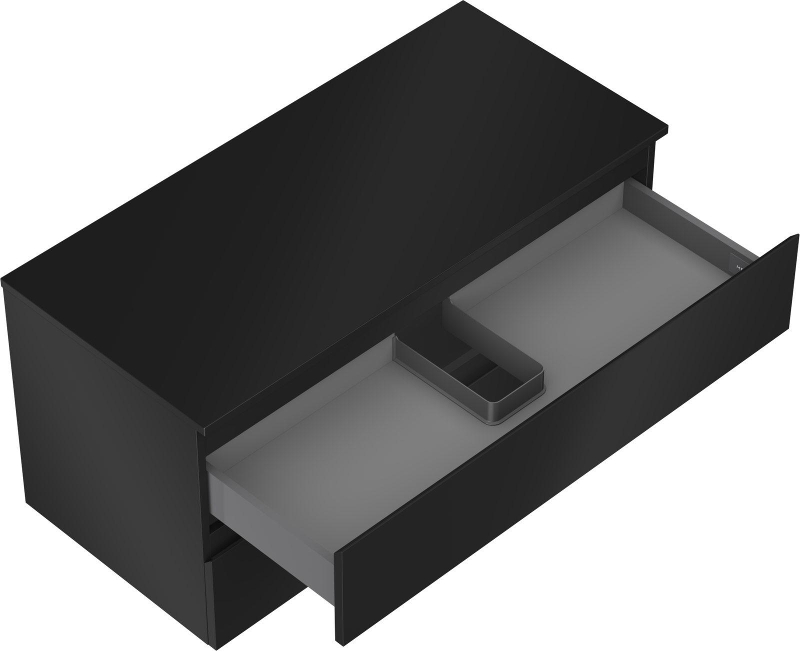 Il ritaglio nel cassetto è progettato in modo da ospitare il sifone, che è necessario nelle installazioni dei lavandini. Grazie a ciò, il mobile può essere montato in modo completamente funzionale, senza dover rinunciare allo spazio nel cassetto a favore dell'installazione.