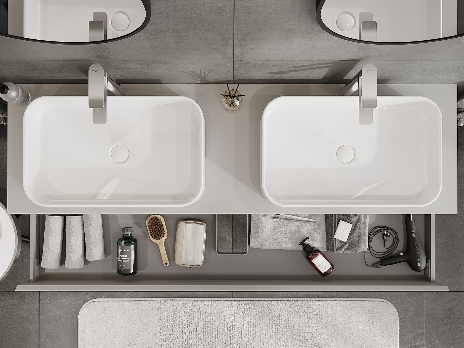 I nostri mobili da bagno modulari possono essere combinati tra loro in diverse configurazioni di colore, consentendo una personalizzazione completa. È possibile scegliere sia l'aspetto che le funzioni dei singoli elementi, permettendo di adattare i mobili alle proprie preferenze stilistiche e di utilizzo.