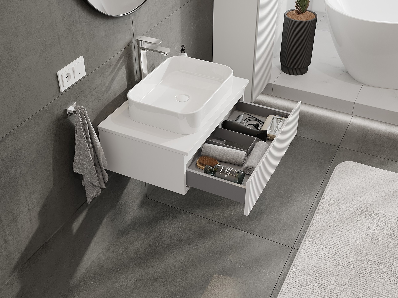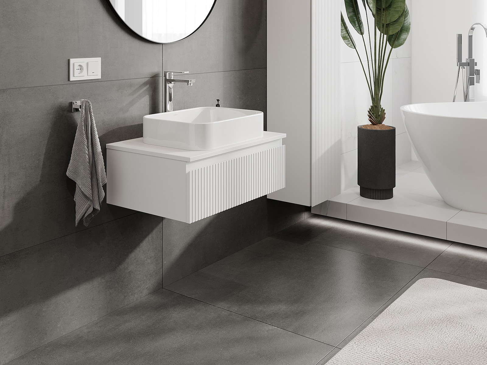 Mexen Rivel mobiletto da bagno sotto lavabo 70 cm con piano, 1 cassetto, scanalato, bianco opaco - 91A20-07023-1-BFC01