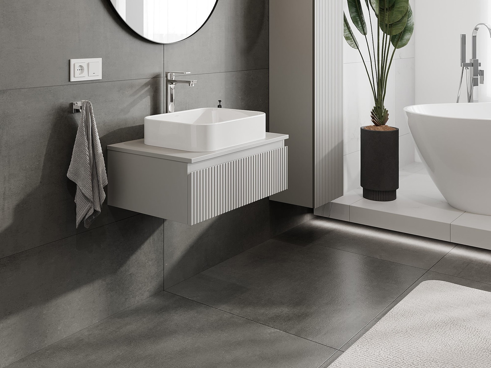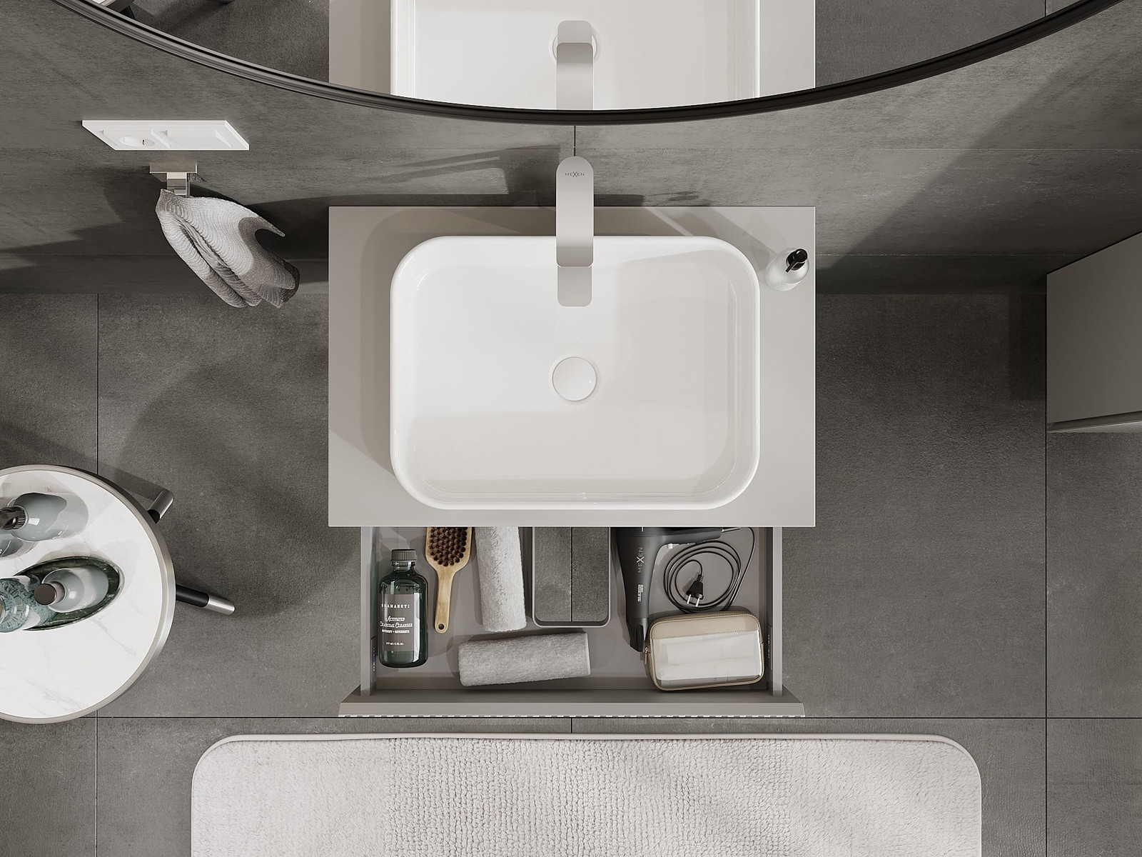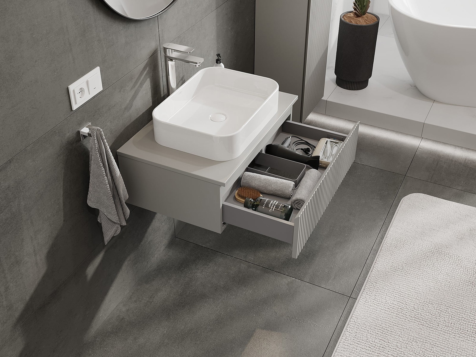 Mexen Rivel mobiletto da bagno sotto lavabo 70 cm con piano, 1 cassetto, scanalato, grigio opaco - 91A20-07023-1-BFC62