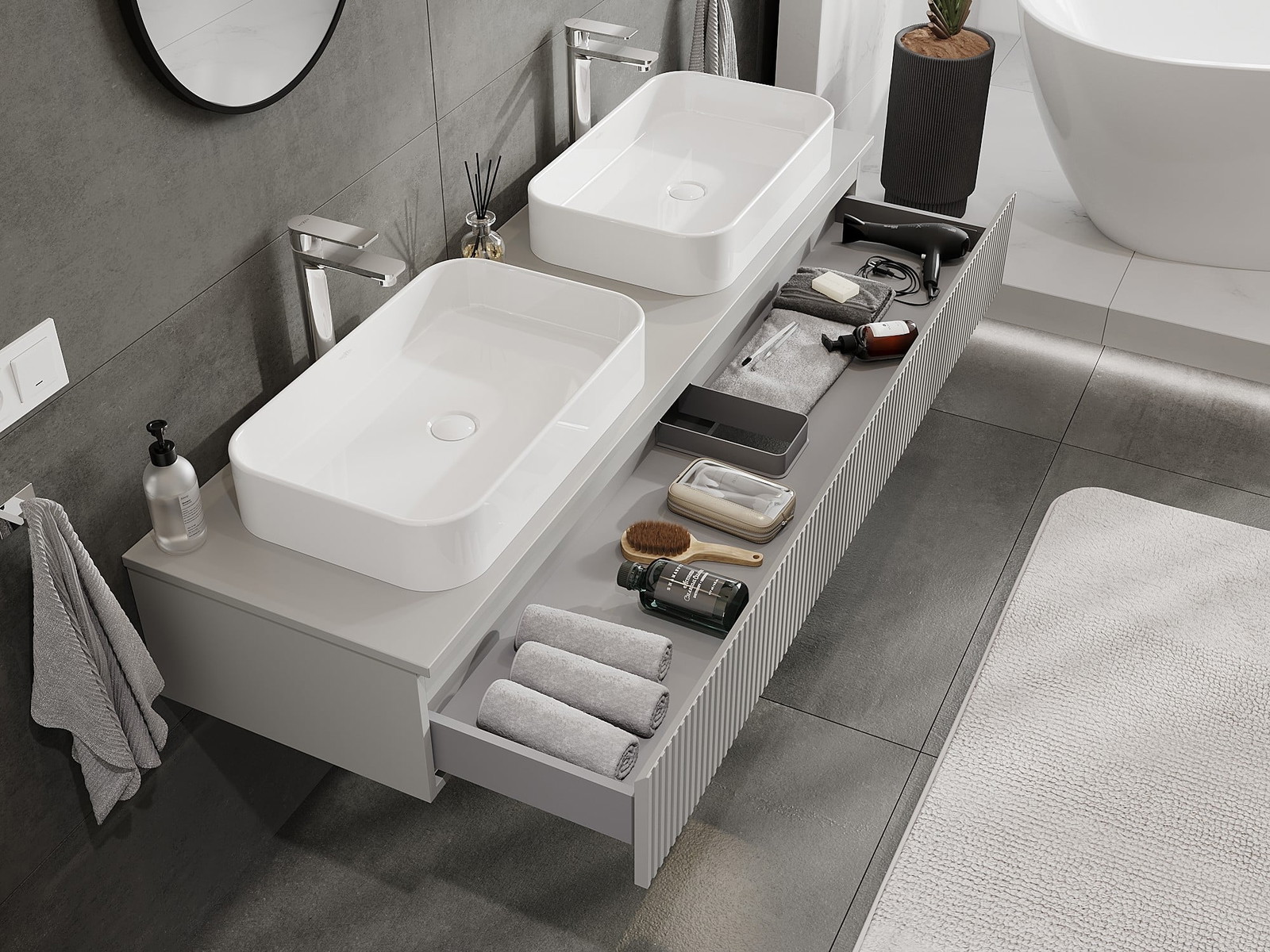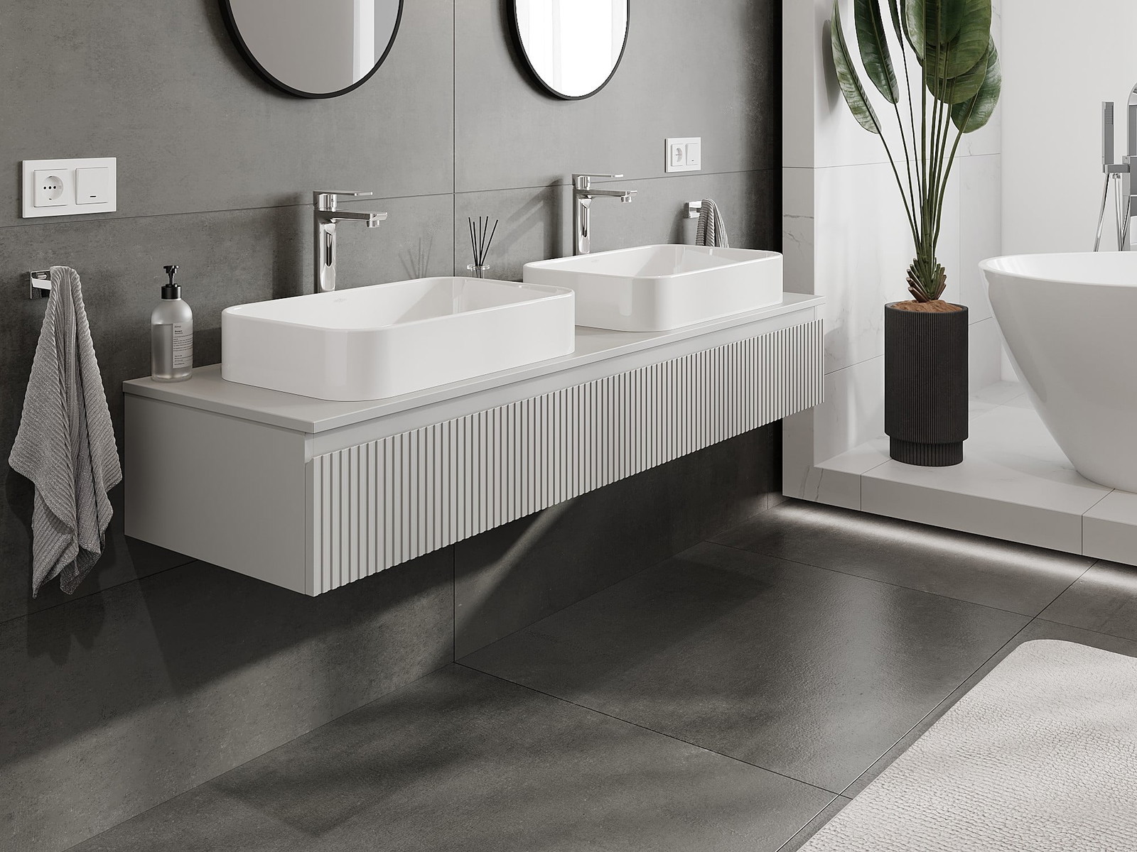 Mexen Rivel mobile bagno sottolavabo 160 cm con piano, 1 cassetto, scanalato, grigio opaco - 91A20-16023-1-BFC62