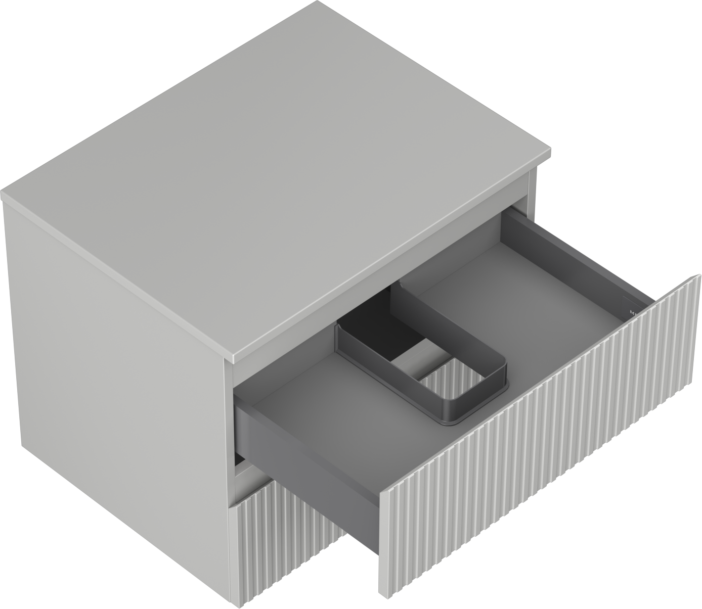 Il ritaglio nel cassetto è progettato in modo da ospitare il sifone, che è necessario nelle installazioni dei lavandini. Grazie a ciò, il mobile può essere montato in modo completamente funzionale, senza dover rinunciare allo spazio nel cassetto a favore dell'installazione.