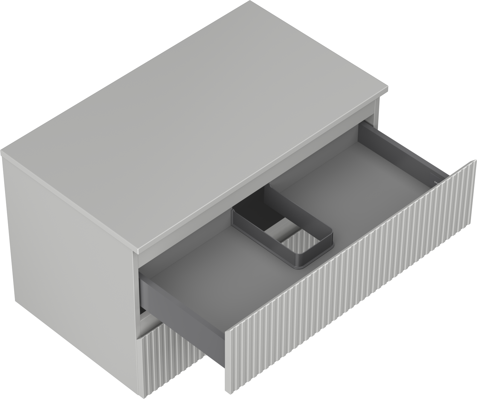 Il ritaglio nel cassetto è progettato in modo da ospitare il sifone, che è necessario nelle installazioni dei lavandini. Grazie a ciò, il mobile può essere montato in modo completamente funzionale, senza dover rinunciare allo spazio nel cassetto a favore dell'installazione.
