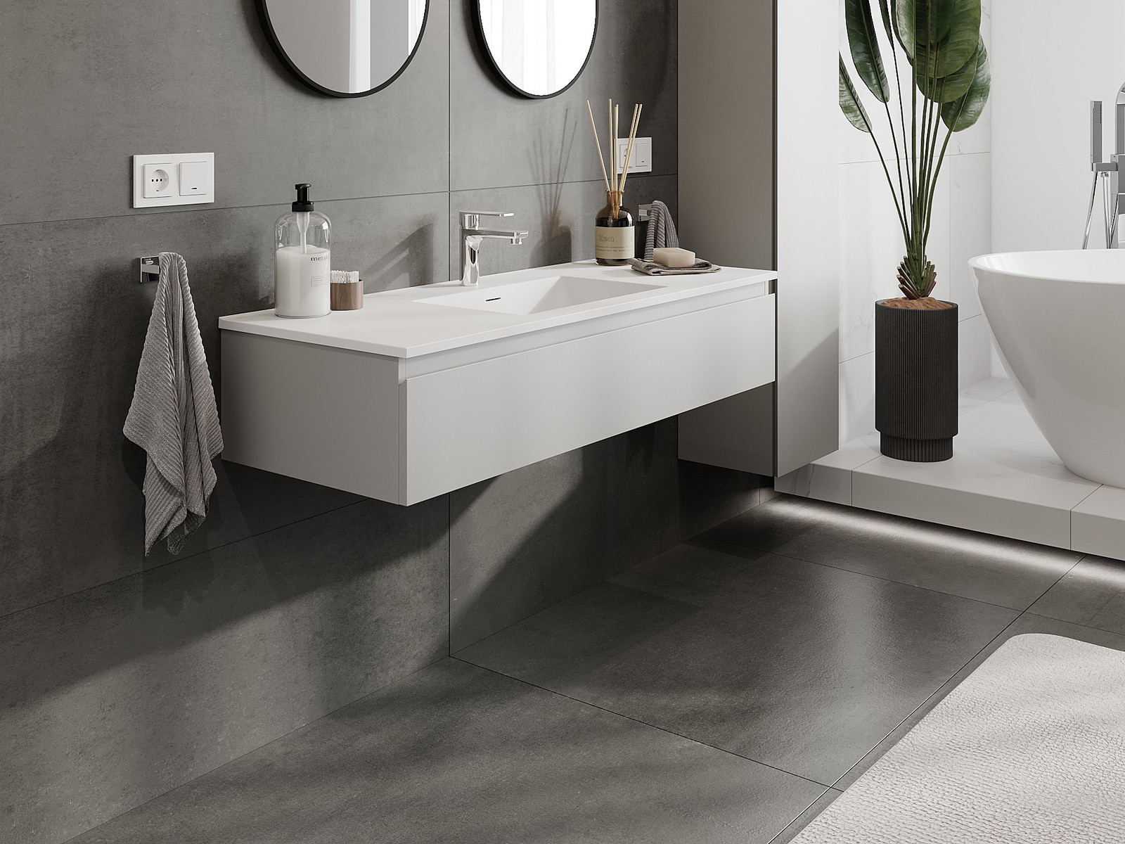 Mexen Orio armadietto da bagno 120 cm con lavabo Otis, 1 cassetto, grigio opaco/bianco opaco - 91A10-12023-1-BF62-W18M01