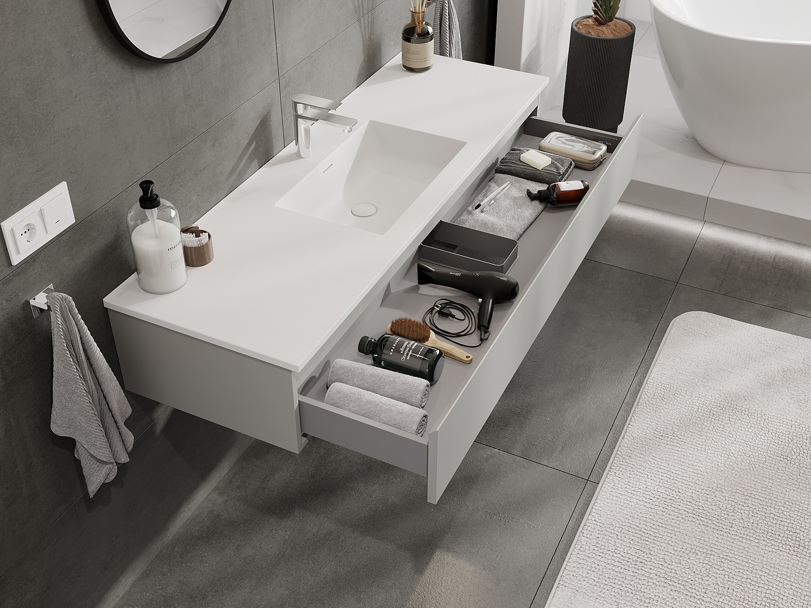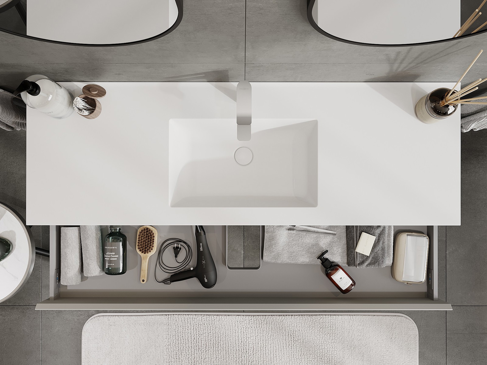 Mexen Orio armadietto bagno 140 cm con lavabo Otis, 1 cassetto, grigio opaco/bianco opaco - 91A10-14023-1-BF62-W18M01