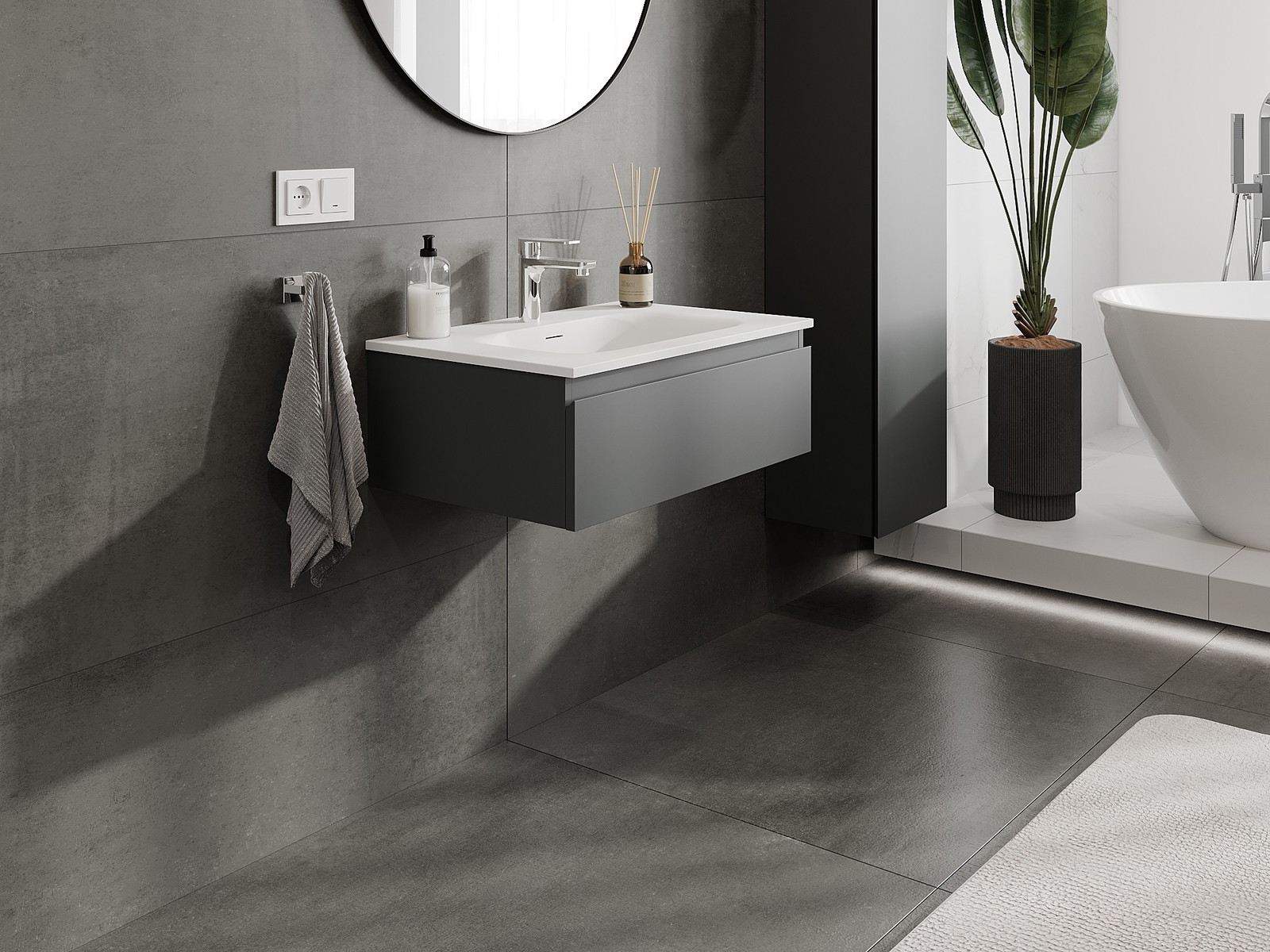Mexen Orio mobile bagno 70 cm con lavabo Vela, 1 cassetto, grafite opaco/bianco opaco - 91A10-07023-1-BF66-W23M01