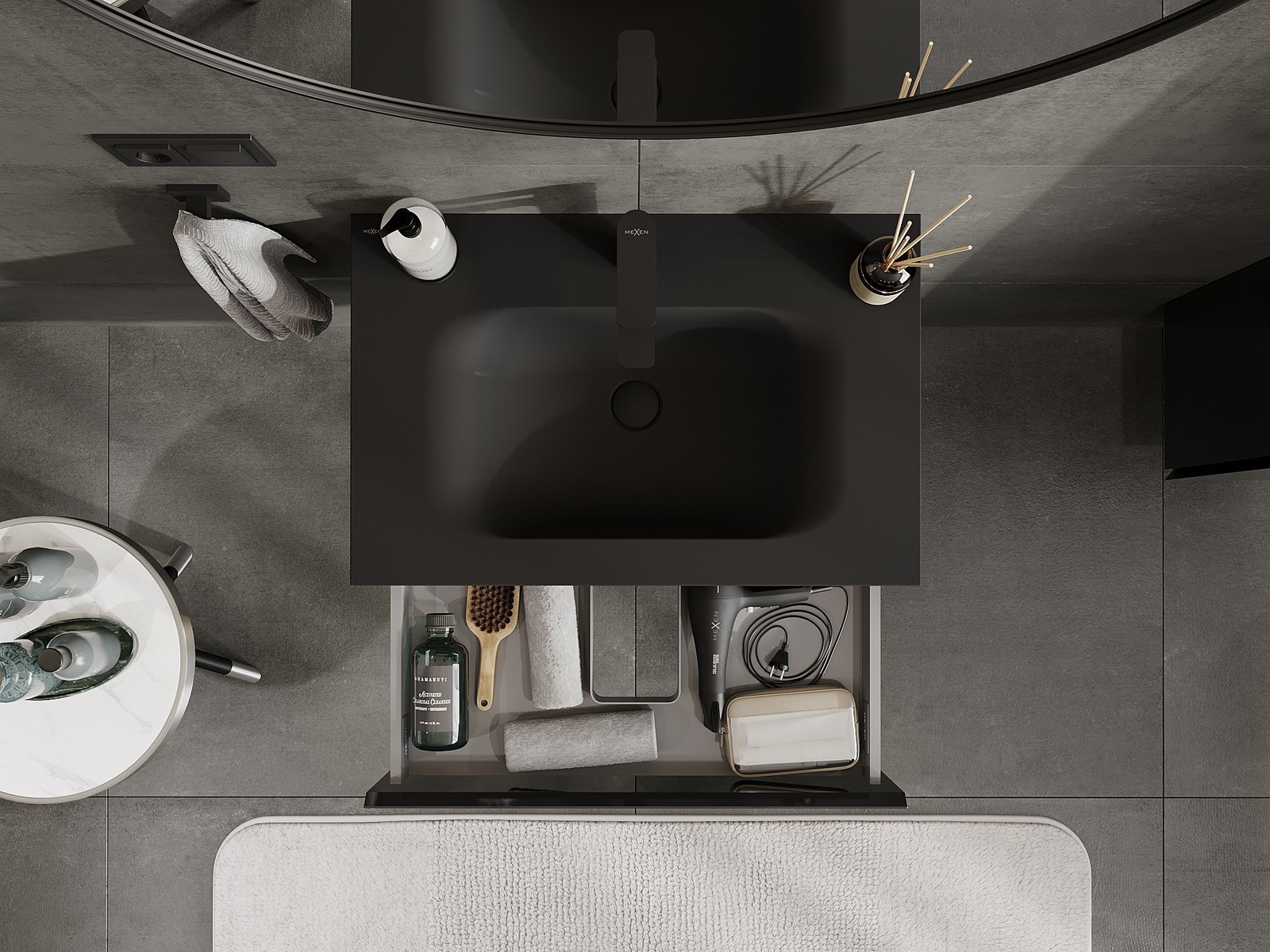 Mexen Orio mobile da bagno 70 cm con lavabo Vela, 1 cassetto, nero lucido/nero opaco - 91A10-07023-1-BF70-W23M71