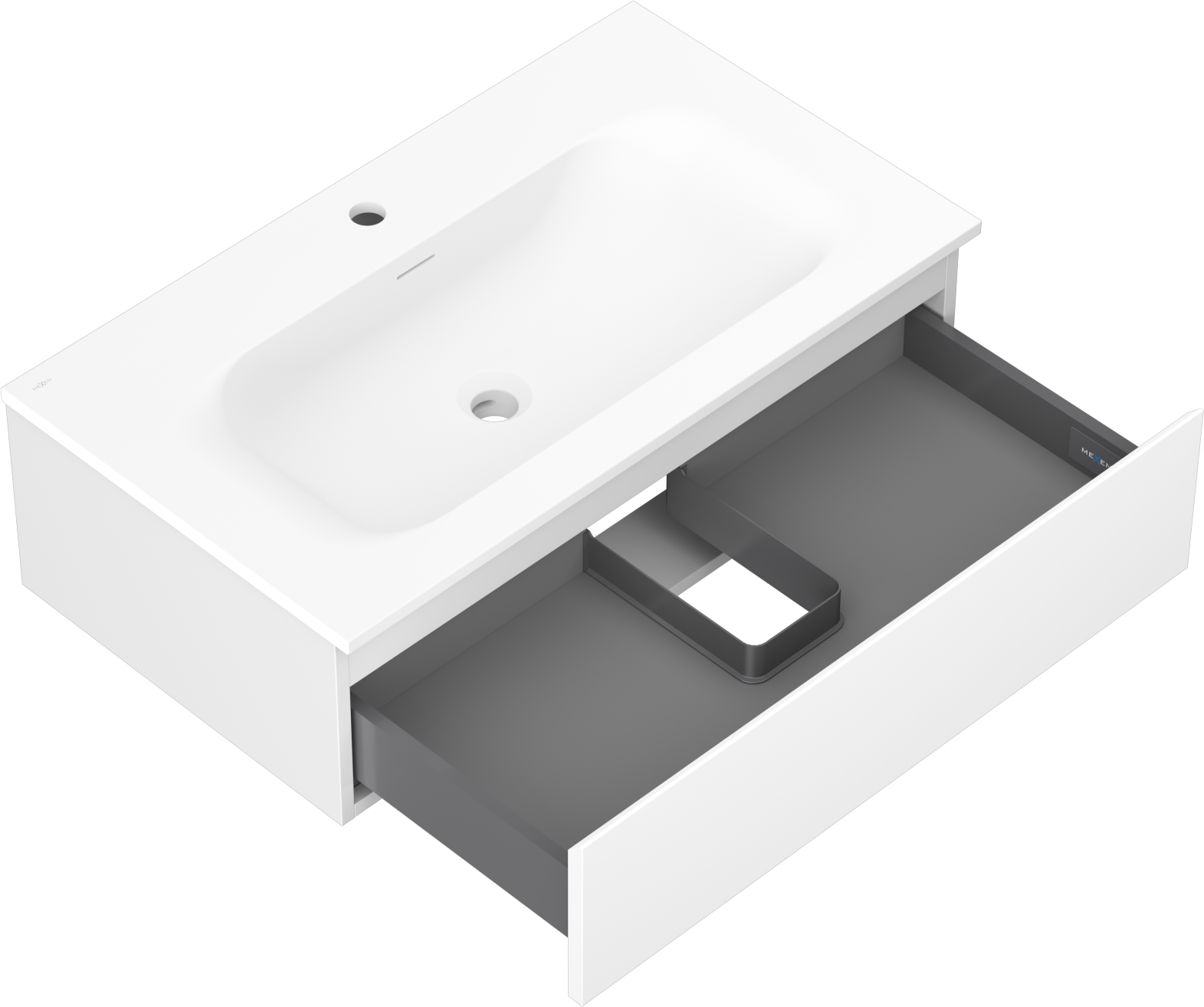 Il ritaglio nel cassetto è progettato in modo da ospitare il sifone, che è necessario nelle installazioni dei lavandini. Grazie a ciò, il mobile può essere montato in modo completamente funzionale, senza dover rinunciare allo spazio nel cassetto a favore dell'installazione.