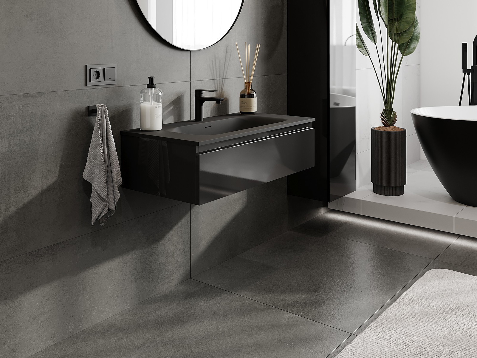 Mexen Orio mobile da bagno 90 cm con lavabo Vela, 1 cassetto, nero lucido/nero opaco - 91A10-09023-1-BF70-W23M71