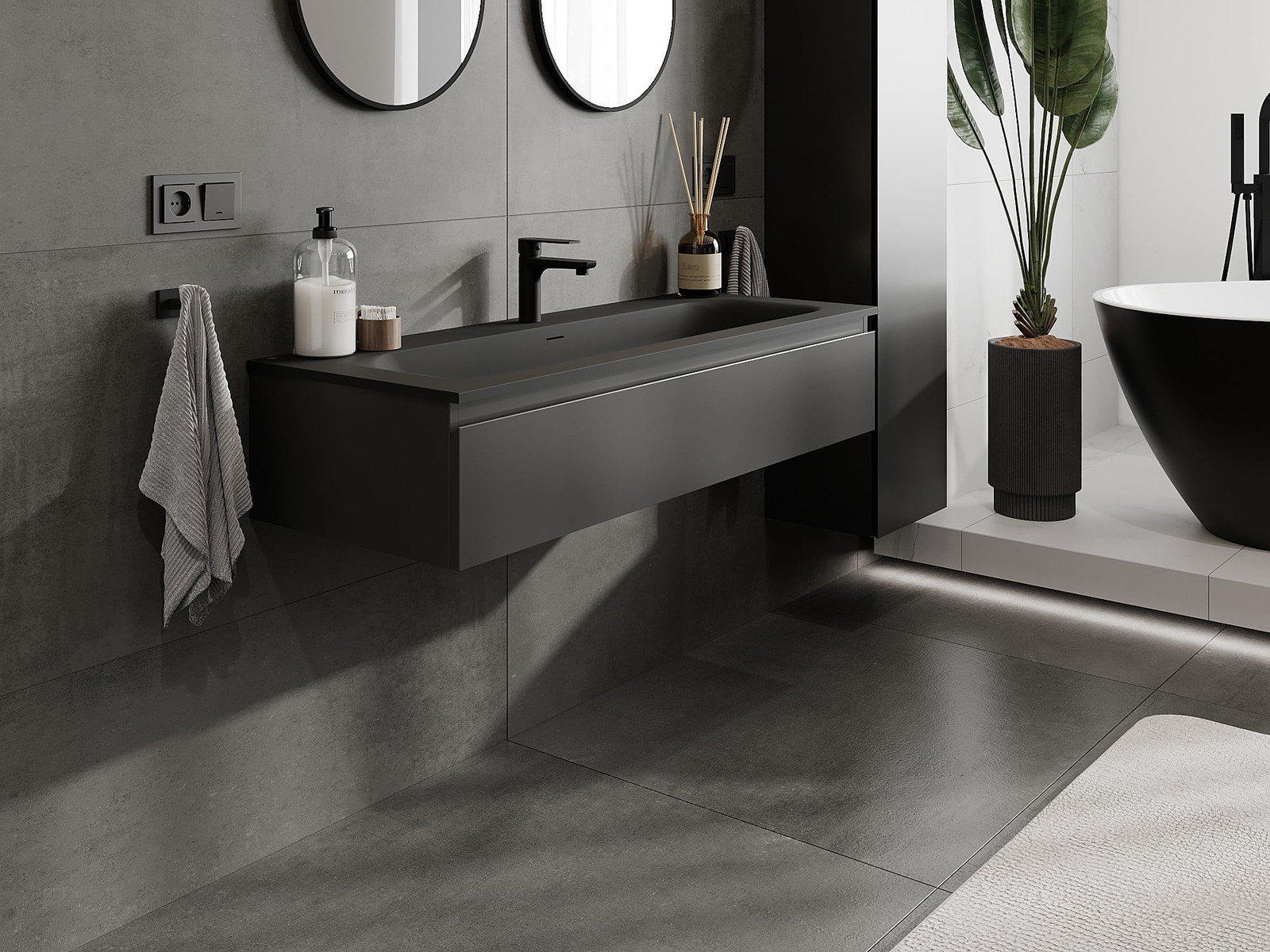 Mexen Orio mobile bagno 120 cm con lavabo Vela, 1 cassetto, nero opaco - 91A10-12023-1-BF71-W23M71
