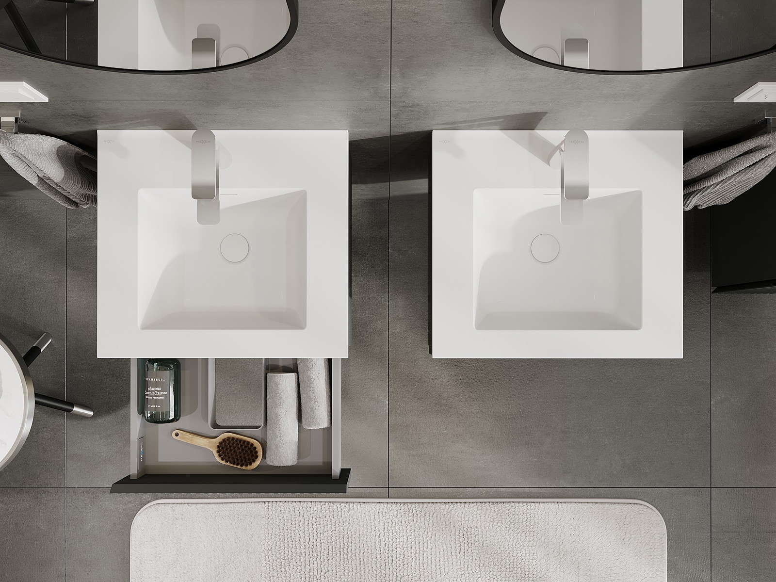 Mexen Rivel mobiletto da bagno 50 cm con lavabo Otis, 1 cassetto, scanalato, grafite opaco/bianco opaco