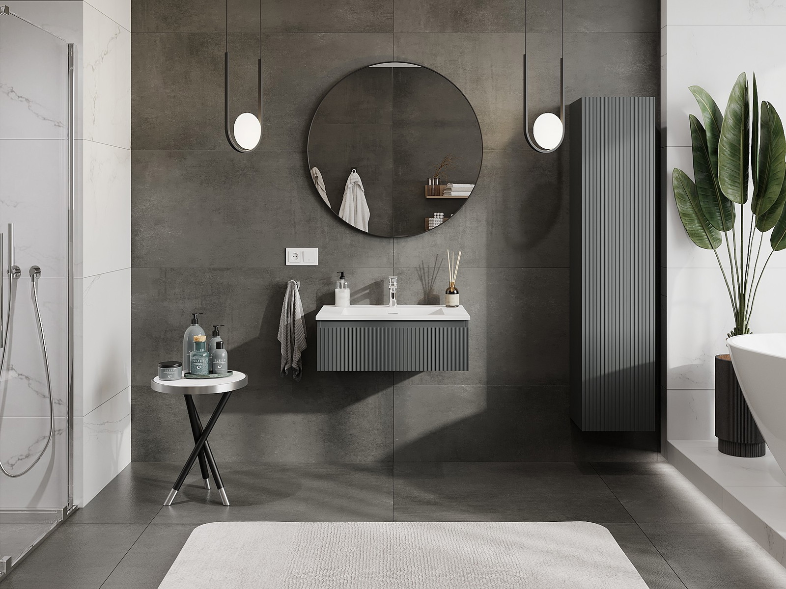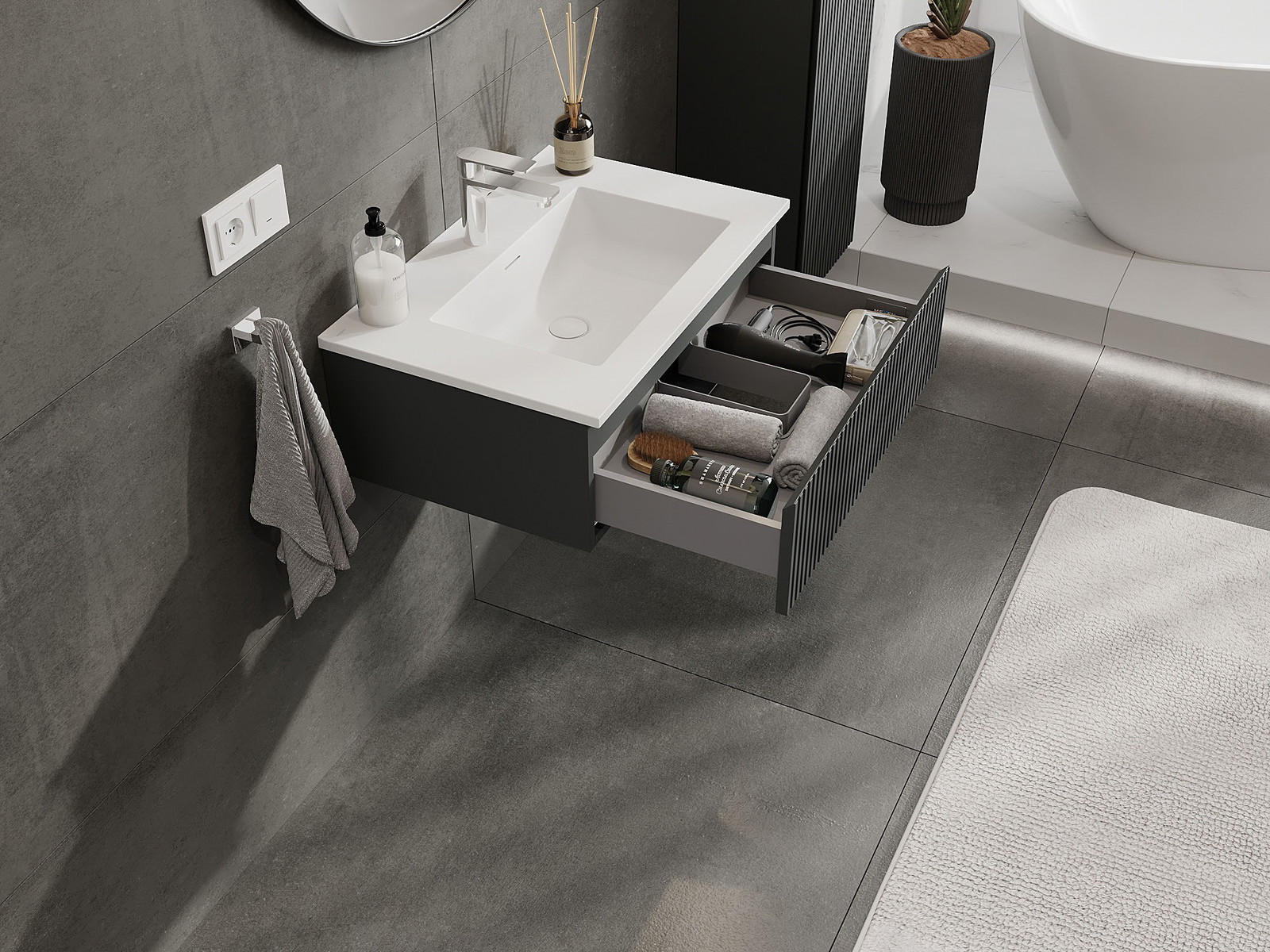 Mexen Rivel mobiletto da bagno 70 cm con lavabo Otis, 1 cassetto, scanalato, grafite opaco/bianco opaco