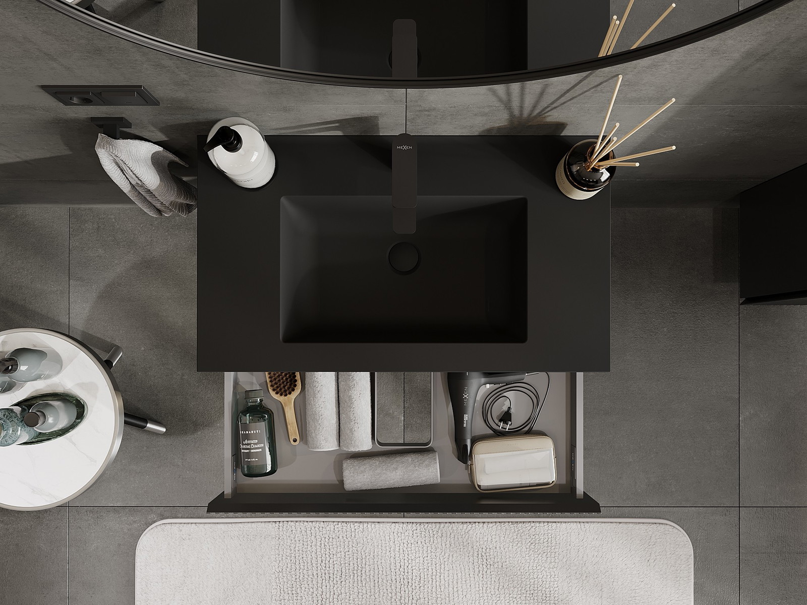 Mexen Rivel mobile bagno 80 cm con lavabo Otis, 1 cassetto, scanalato, nero opaco - 91A20-08023-1-BF71-W18M71