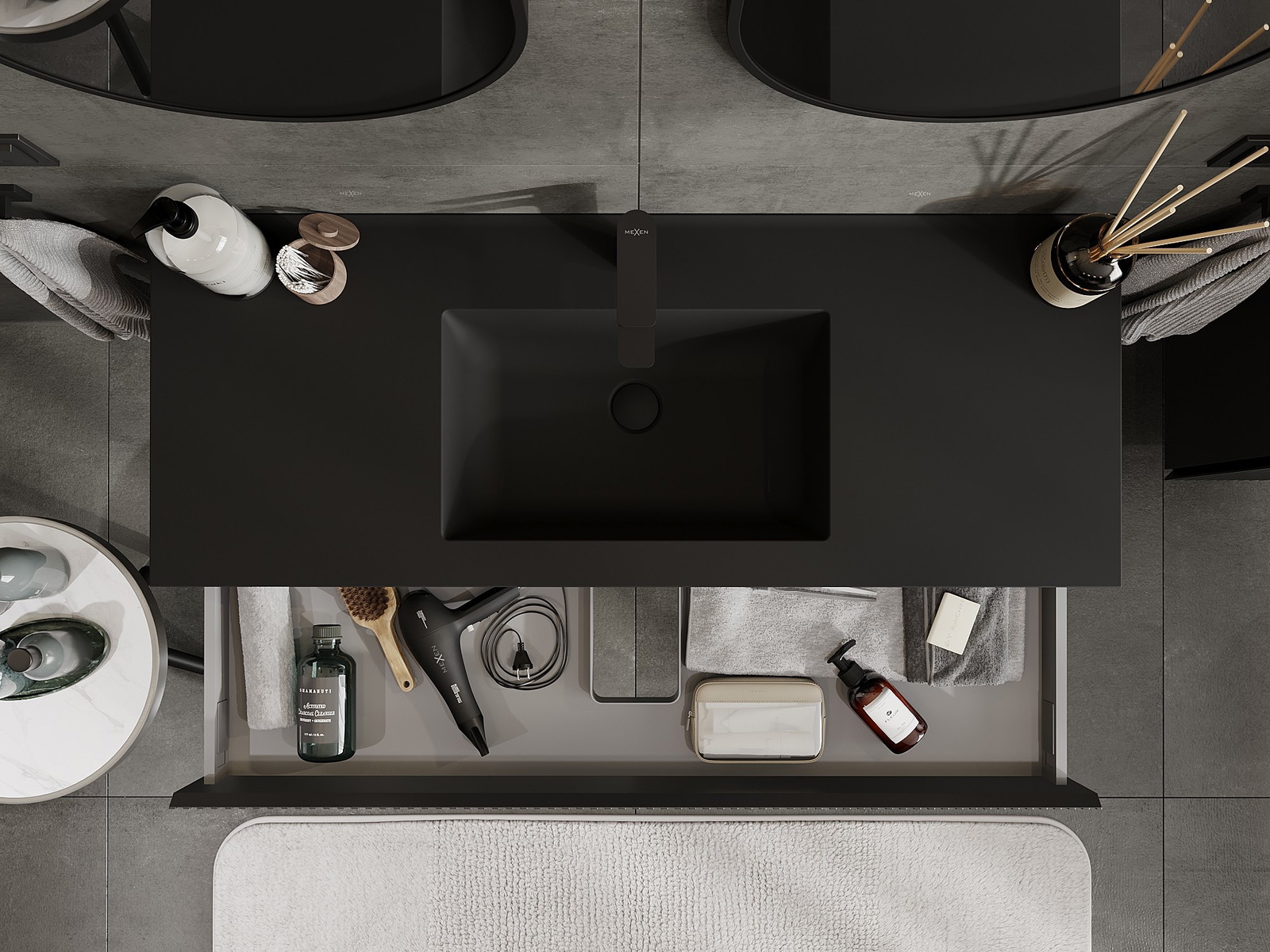 Mexen Rivel mobile da bagno 120 cm con lavabo Otis, 1 cassetto, scanalato, nero opaco - 91A20-12023-1-BF71-W18M71