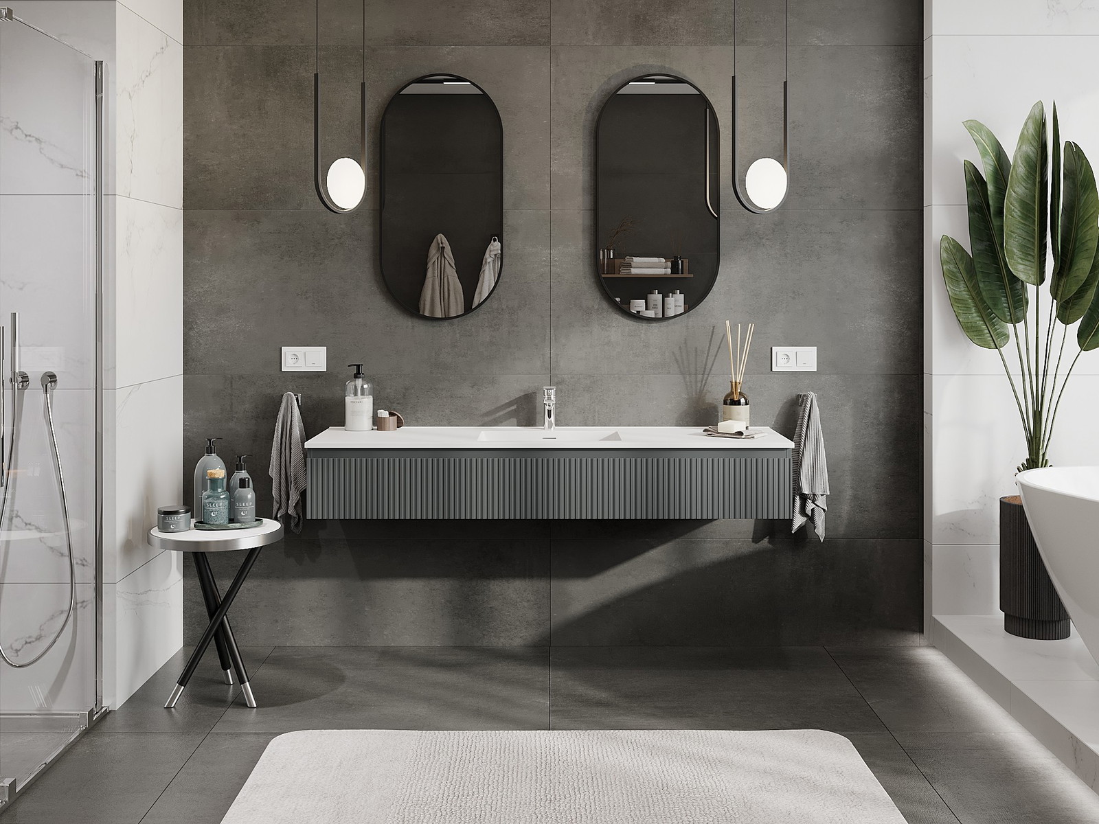 Mexen Rivel mobile bagno 160 cm con lavabo Otis, 1 cassetto, scanalato, grafite opaco/bianco opaco - 91A20-16023-1-BF66-W18M0