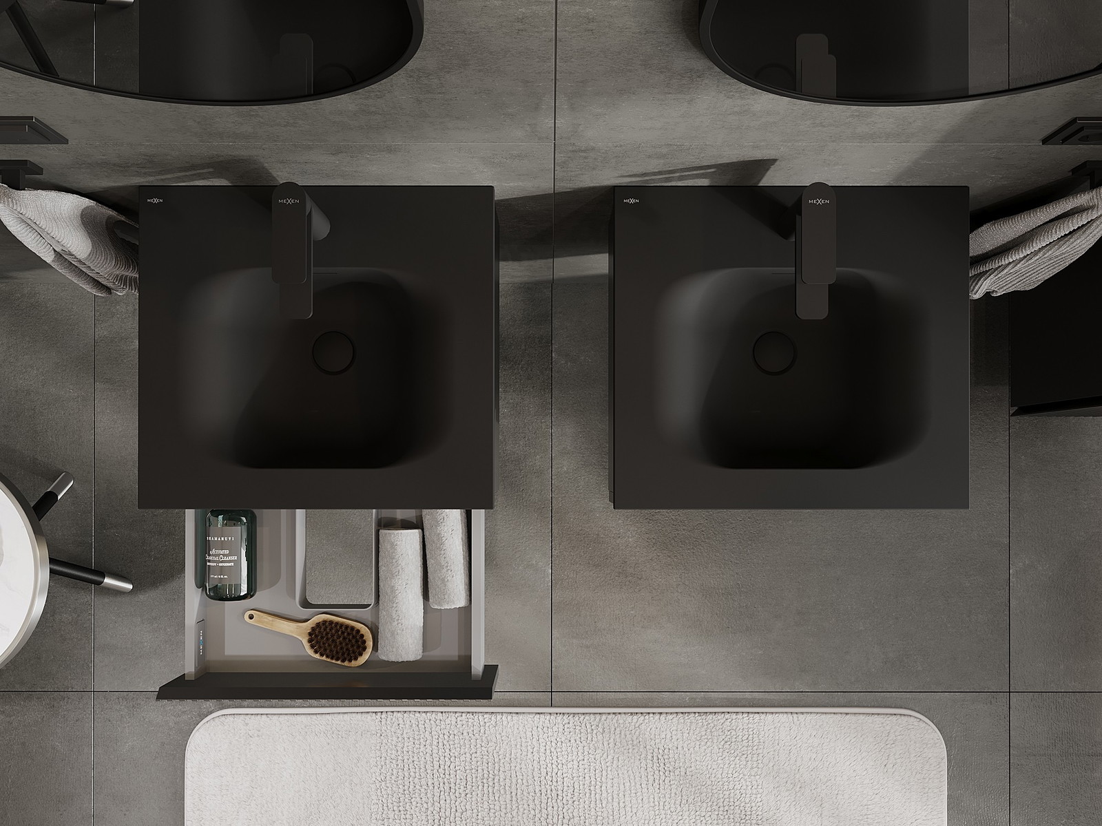 I nostri mobili da bagno modulari possono essere combinati tra loro in diverse configurazioni di colore, consentendo una personalizzazione completa. È possibile scegliere sia l'aspetto che le funzioni dei singoli elementi, permettendo di adattare i mobili alle proprie preferenze stilistiche e di utilizzo.